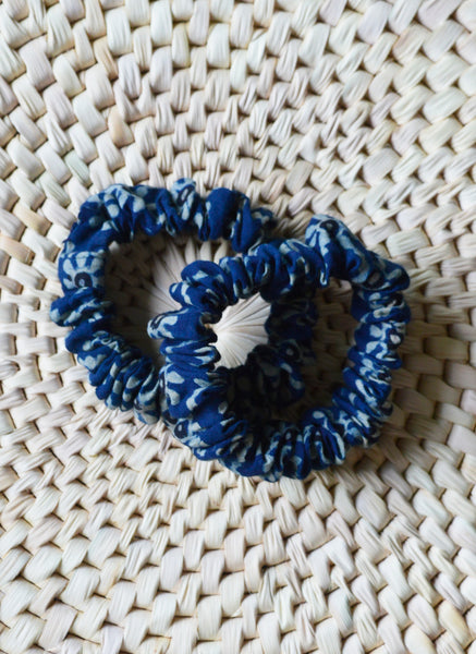 Ajrak Blue Floral Scrunchie Set of 2 – Organic Dyed Hand Block Printed Hair Accessories
