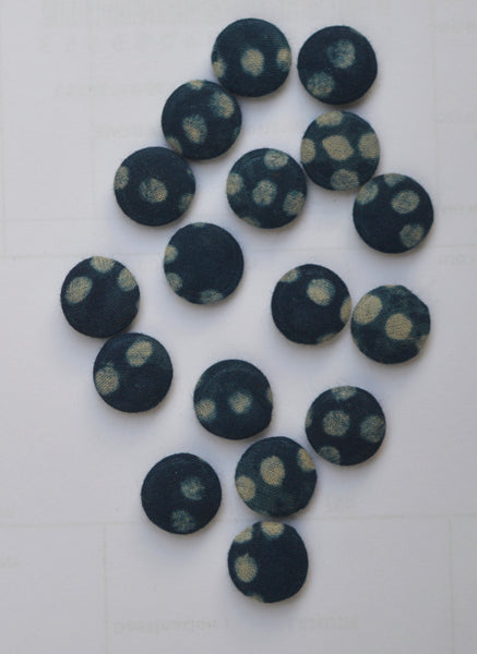 Elevate the fine details of your garments and crafts with this exquisite set of six 13 mm buttons handcrafted from authentic Ajrak fabric in a rich blue base adorned with elegant whitish dot patterns. Each button is crafted with care by skilled women artisans in Sindh using organic, skin-friendly dyes and the time-honoured Ajrak printing technique. Ideal for attaching to kurtas, dresses, waistcoats, jackets or using in creative DIY sewing projects, these buttons bring cultural craftsmanship and stylish accents to every piece. Since each button is individually handmade, slight variations in pattern, shade or texture are natural — making each set uniquely yours. Add a touch of Sindhi heritage, sustainable fashion and artisanal finesse to your wardrobe or handmade creations.
