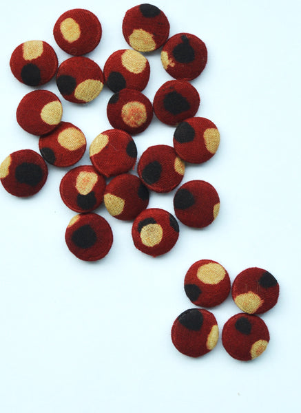 Ajrak Handmade Buttons – Red Polka Dot Set of 6 (13mm) | Organic Dye