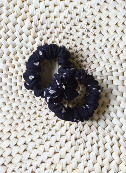 Ajrak Polka Dots Black Scrunchie Set of 2 – Organic Dyed Hand Block Printed Hair Ties
