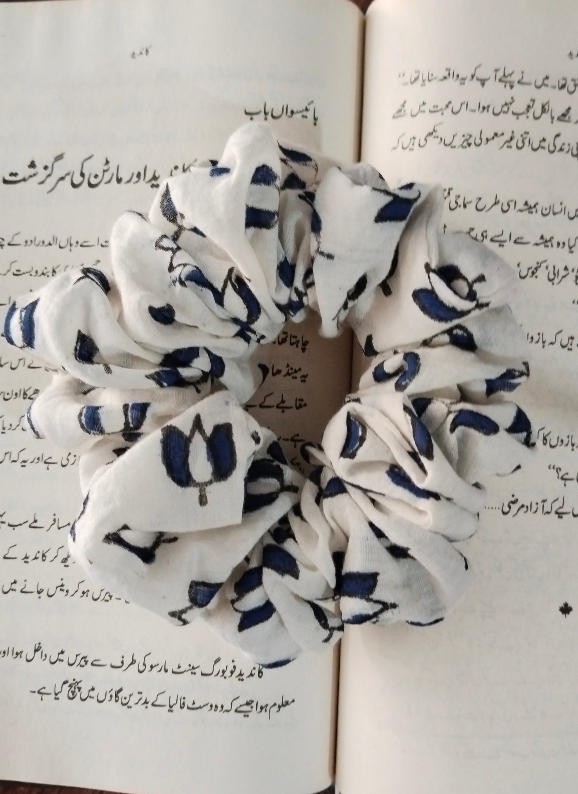 Please note: The pattern, colour, and design of the scrunchie may slightly differ from the photos, as each piece is handcrafted with traditional block printing in natural dyes.