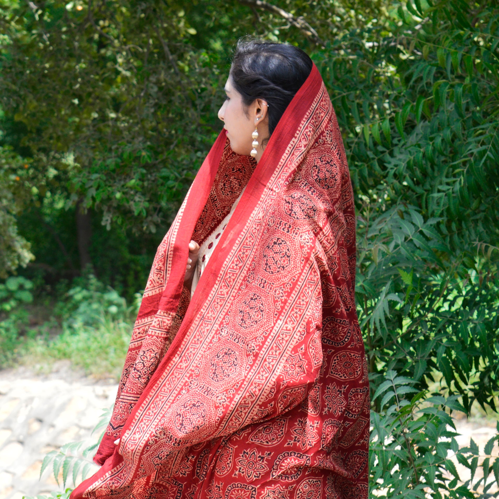 Ajrak Chaadar Badam ( Cotton) – Red, Organic Dye Hand Block Printed