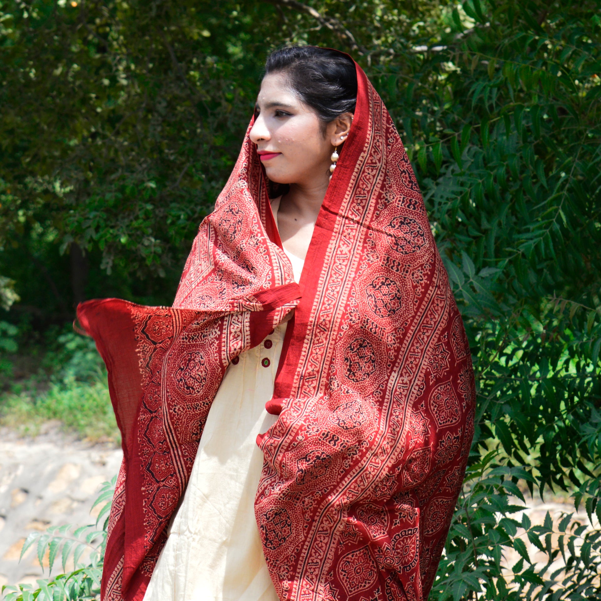 Organic Dye Hand Block Printed Ajrak Chaadar Red Badam – A Perfect Blend of Tradition and Contemporary Style Our Organic Dye Hand Block Printed Ajrak Chaadar Red Badam brings the timeless art of Ajrak printing...