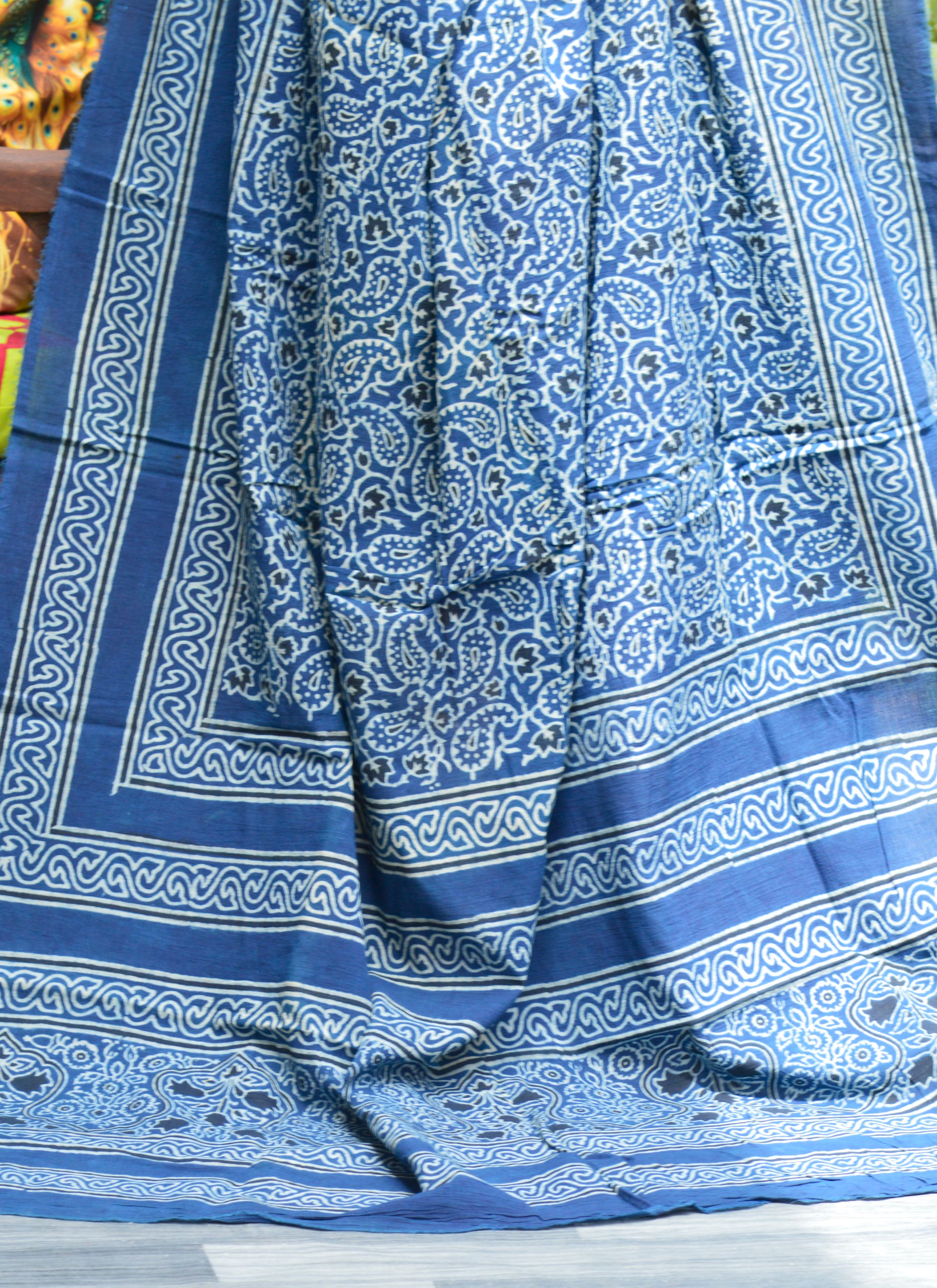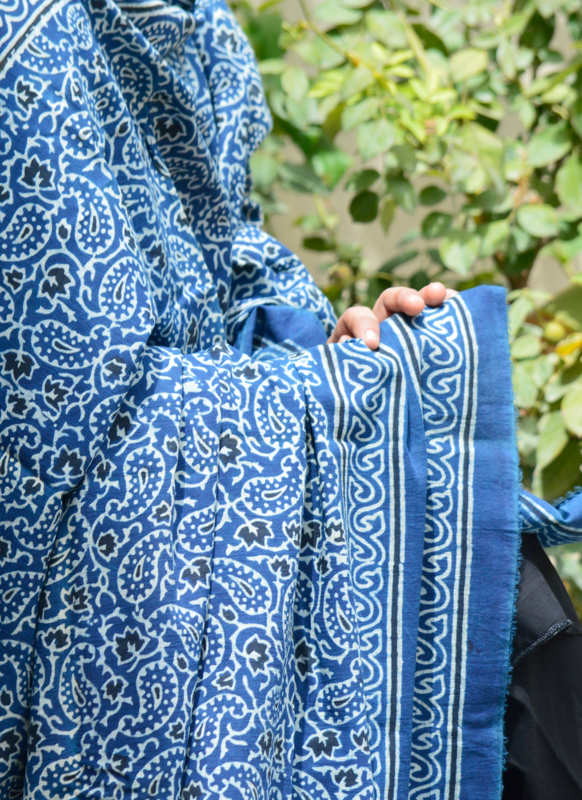 Hand Block Printed Blue Ajrak Chaadar – Chinar Motif