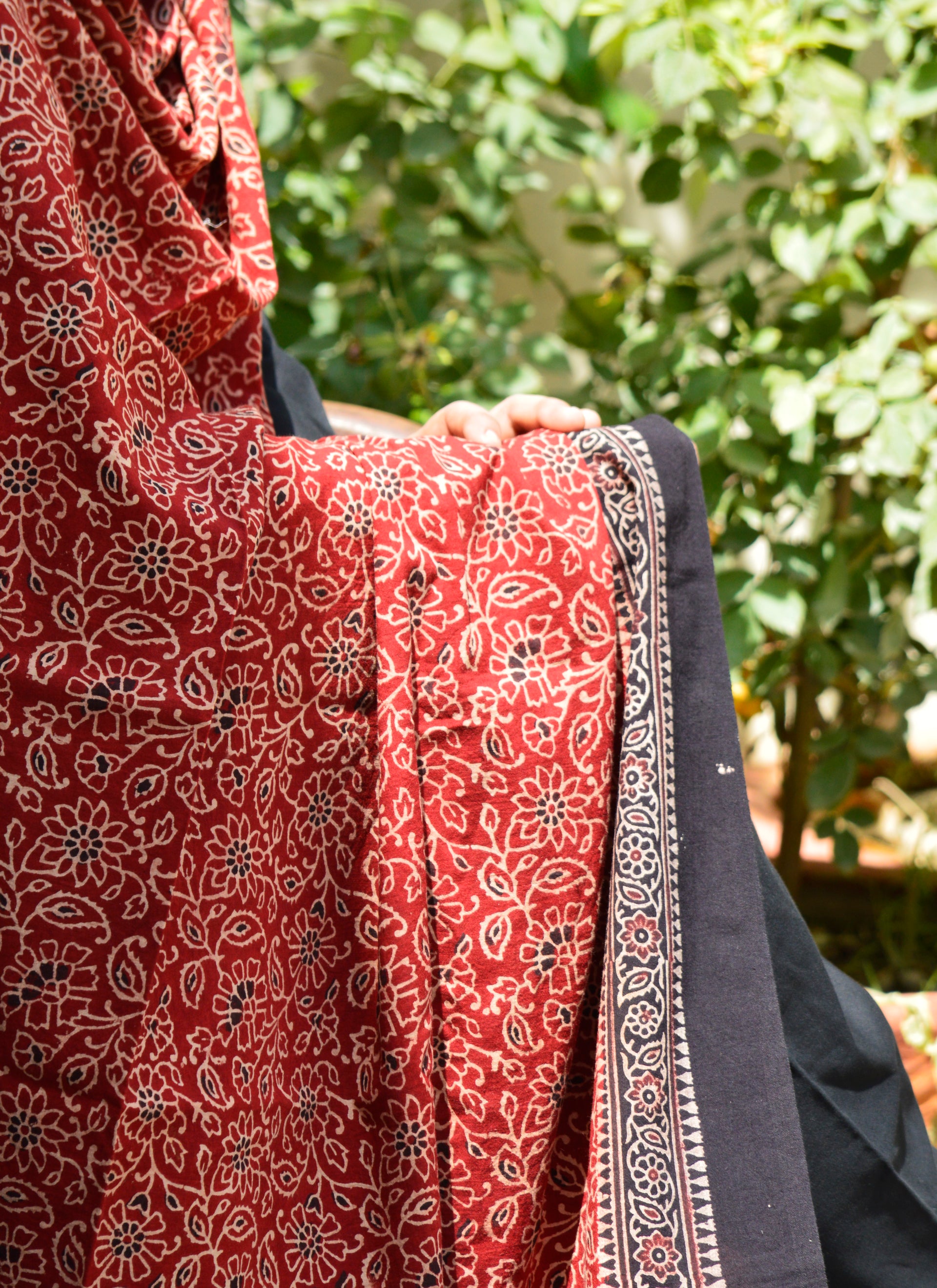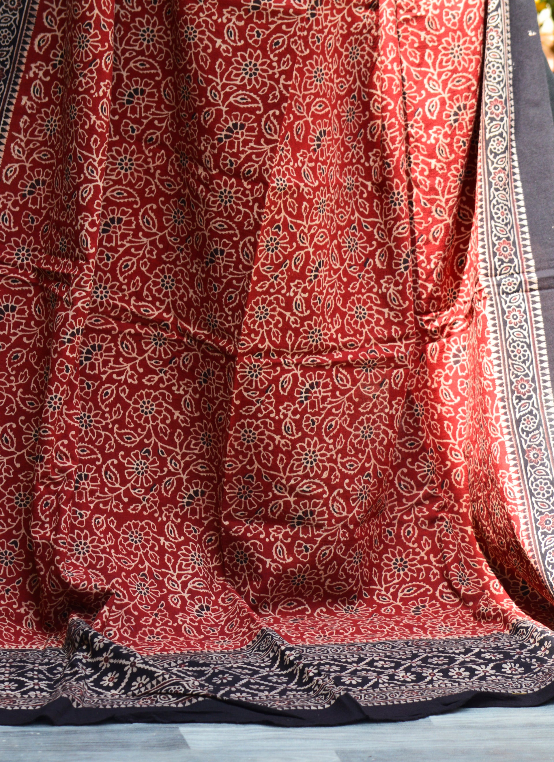 Discover the Perfect Fusion of Tradition and Contemporary Fashion with Our Organic Dye Hand Block Printed Ajrak Odhni Floral Bel