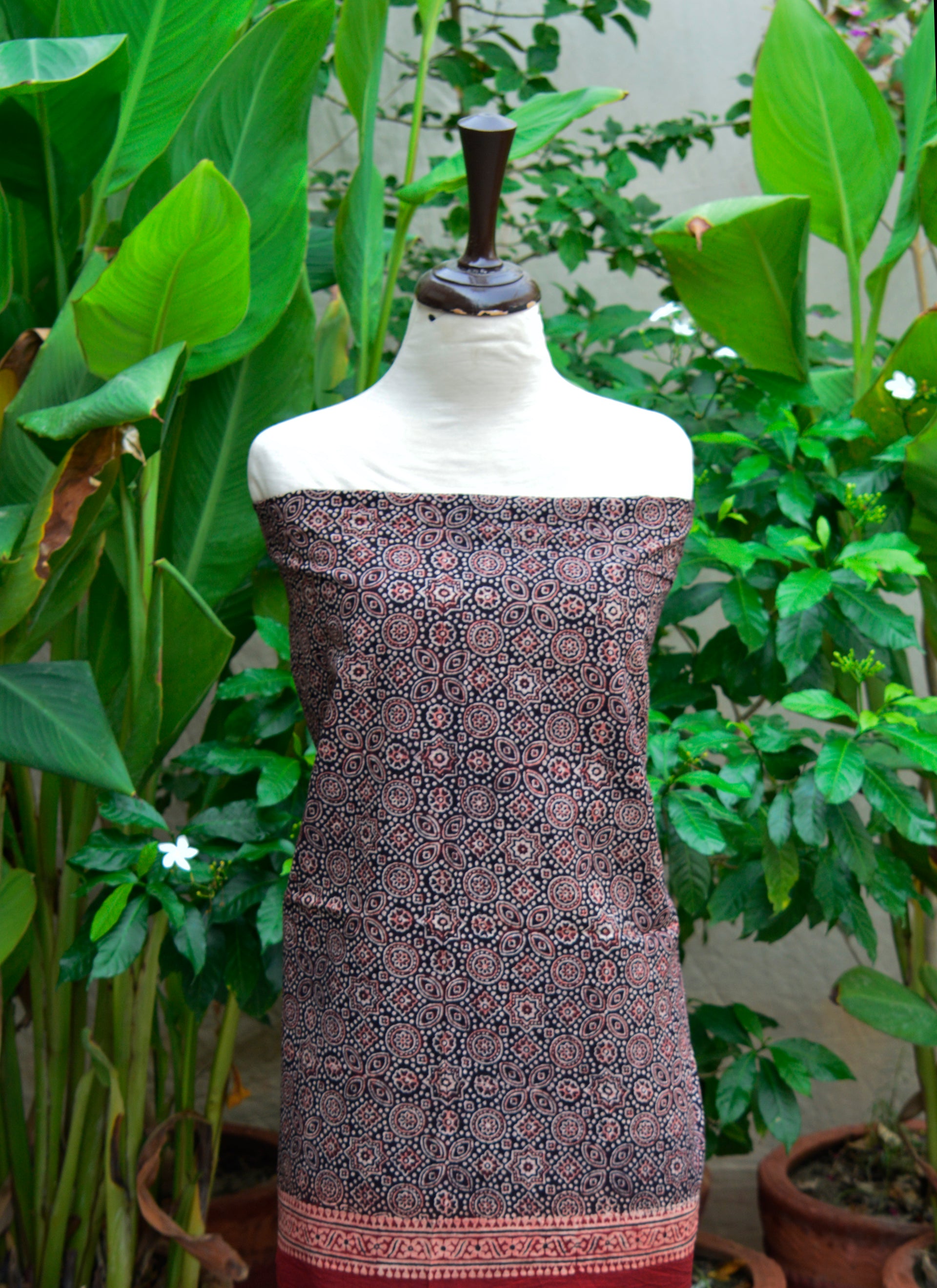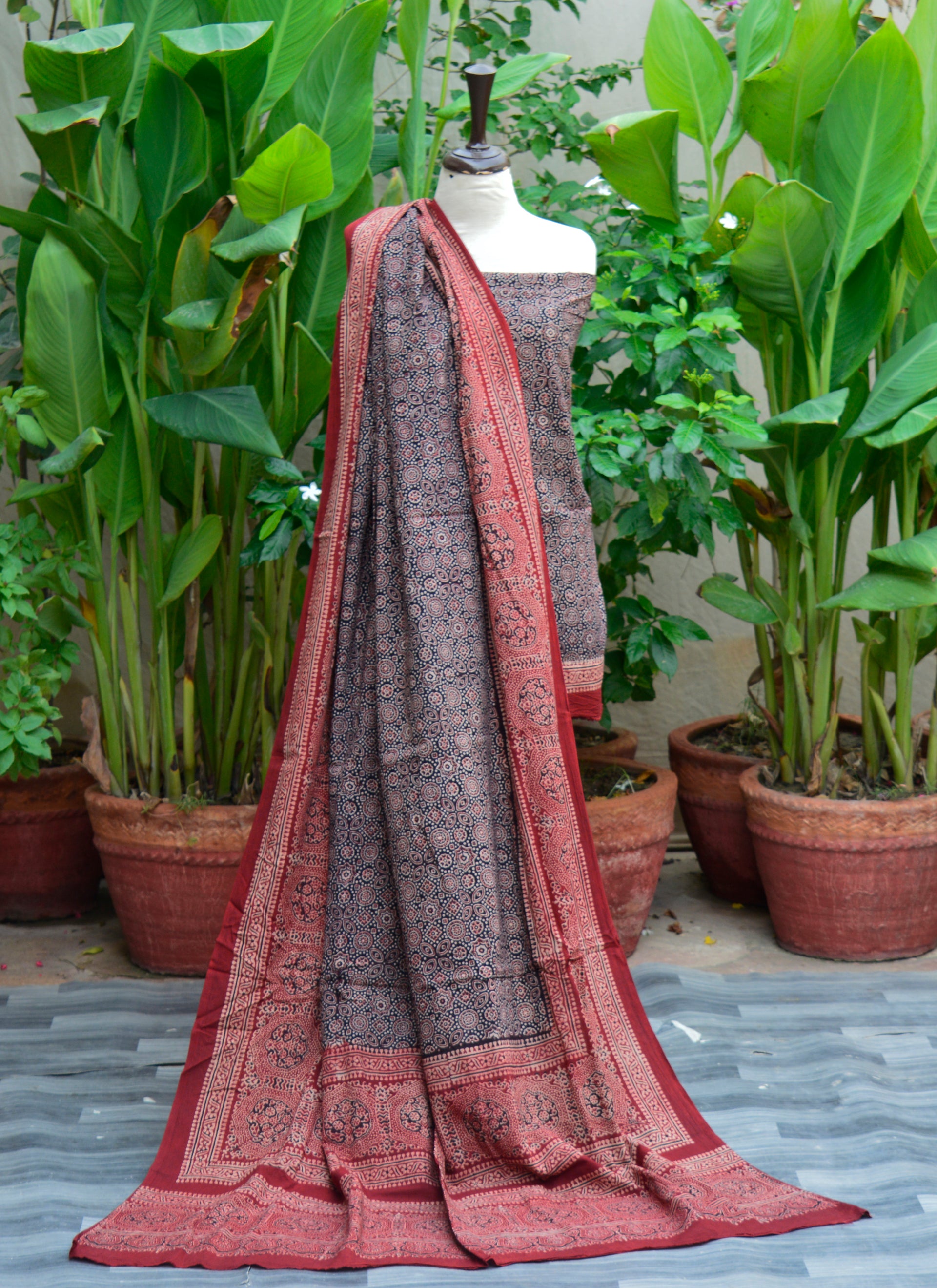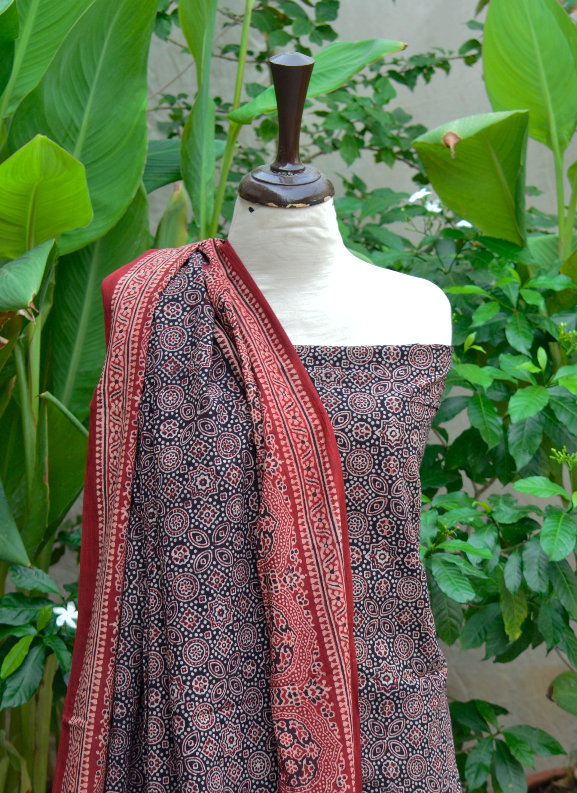 Step into timeless elegance with this Ajrak Classical Two-Piece Set, crafted from soft premium cotton fabric and decorated with traditional Ajrak motifs. The unstitched shirt and dupatta offer versatility for custom tailoring, making it ideal for women who love cultural fashion blended with everyday comfort. Hand block printed using organic-inspired methods, this set reflects heritage, sustainability, and craftsmanship.