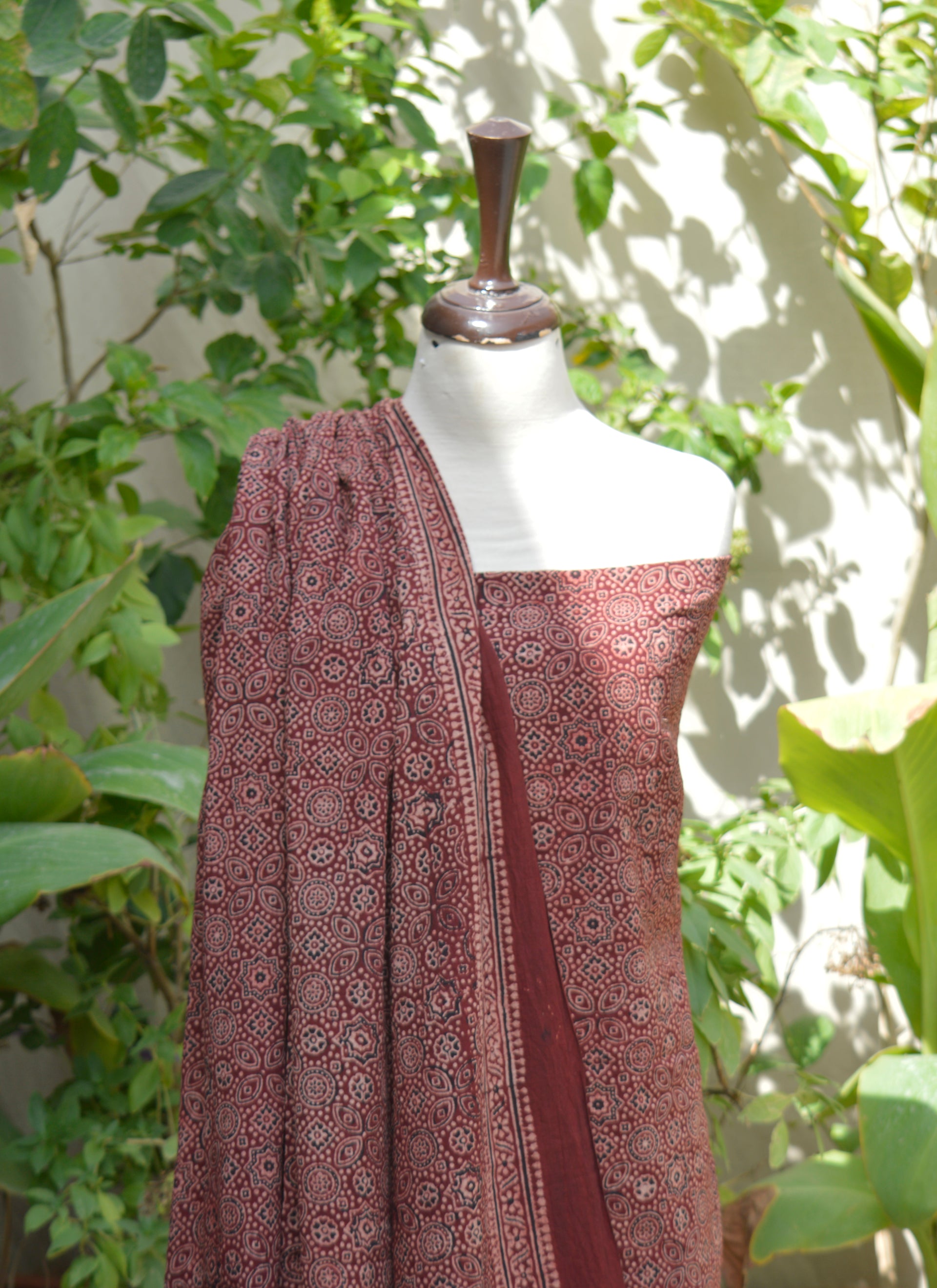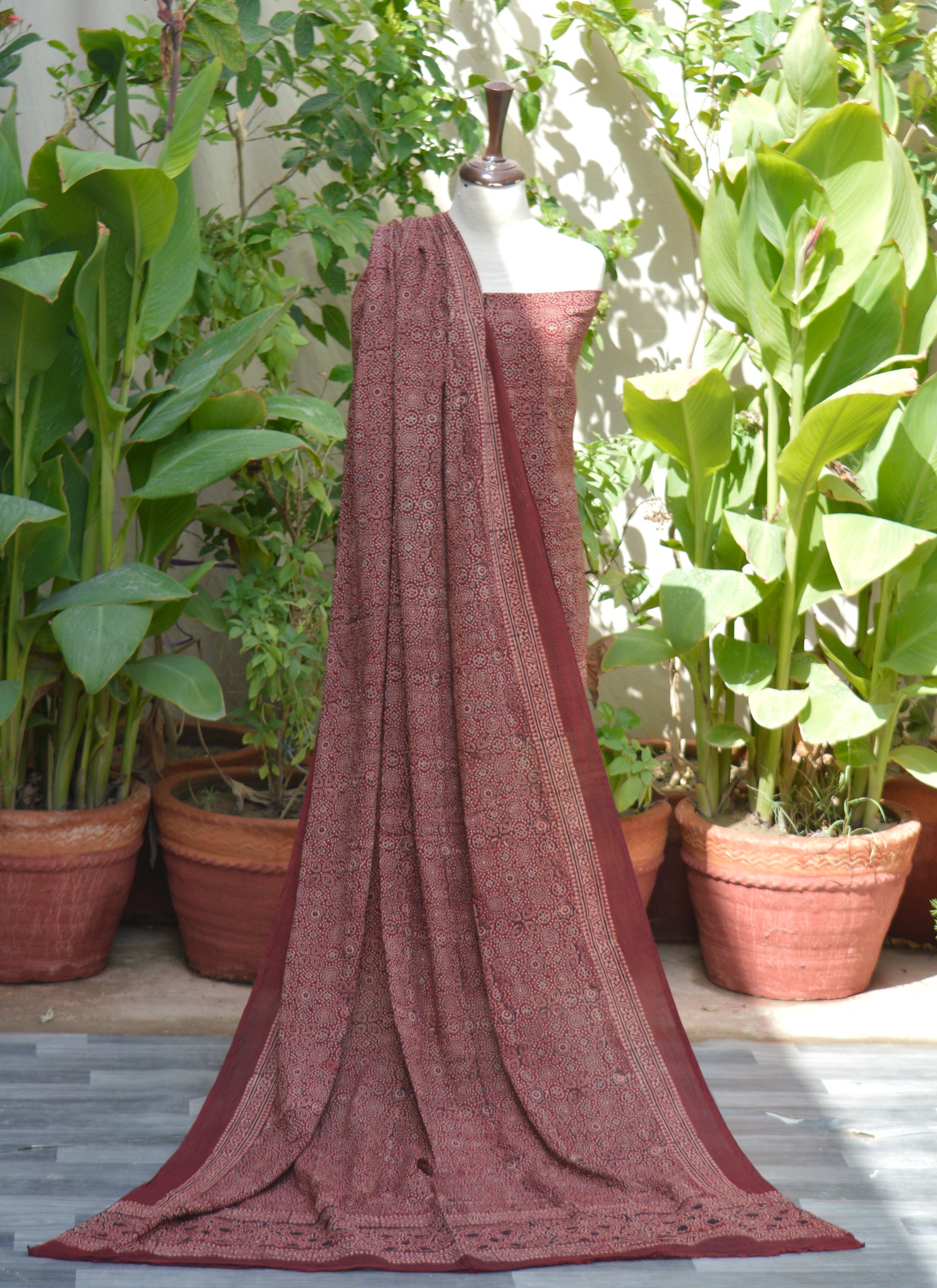 Perfect for casual gatherings, cultural events, and festive celebrations, this two-piece set offers a classic yet trendy appeal. The lightweight dupatta drapes beautifully, adding grace and charm to your overall ensemble. Whether you’re looking to make a statement or simply appreciate the artistry of Ajrak, this outfit is a must-have for your wardrobe.