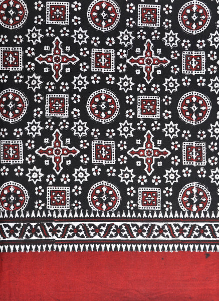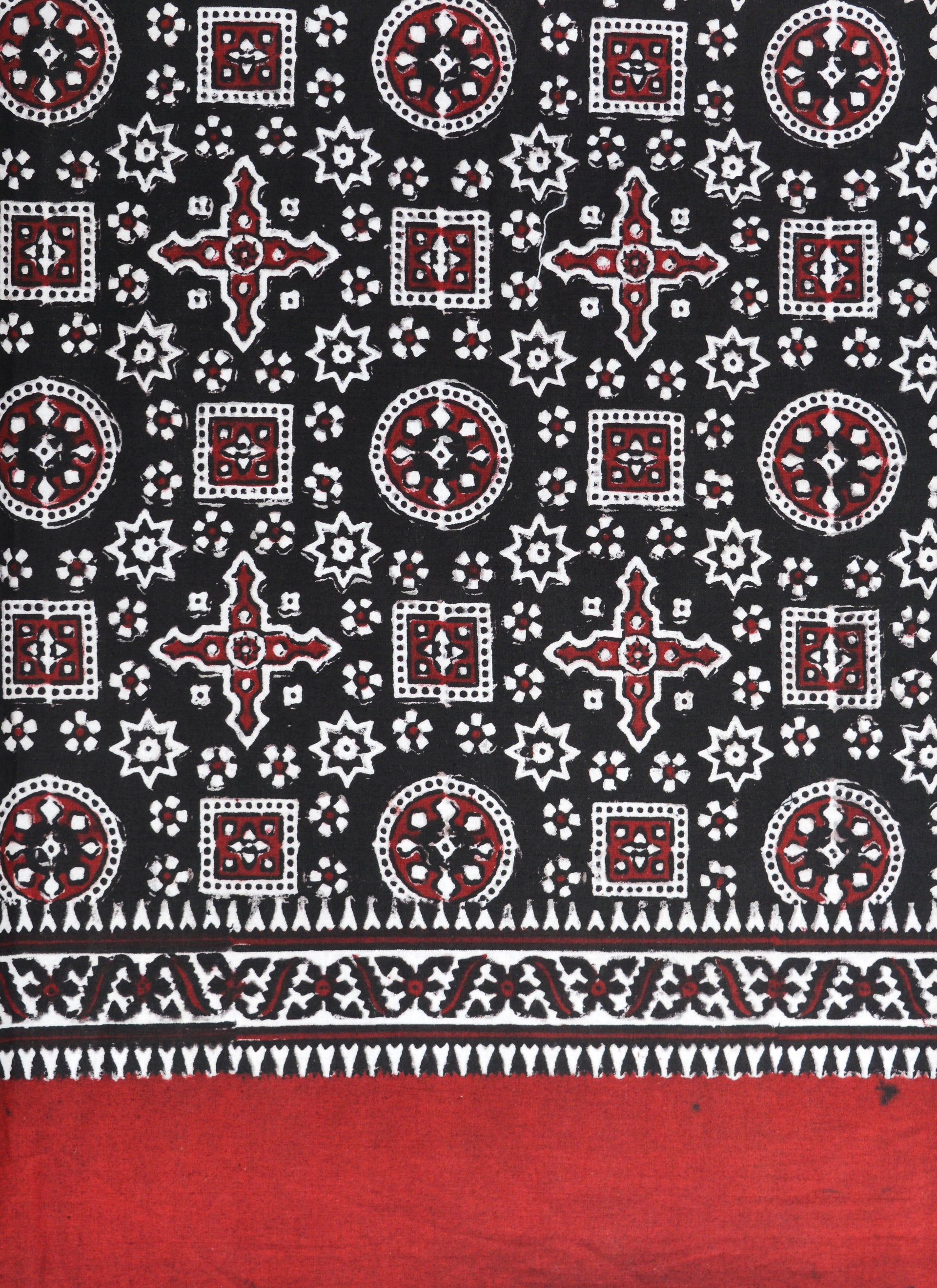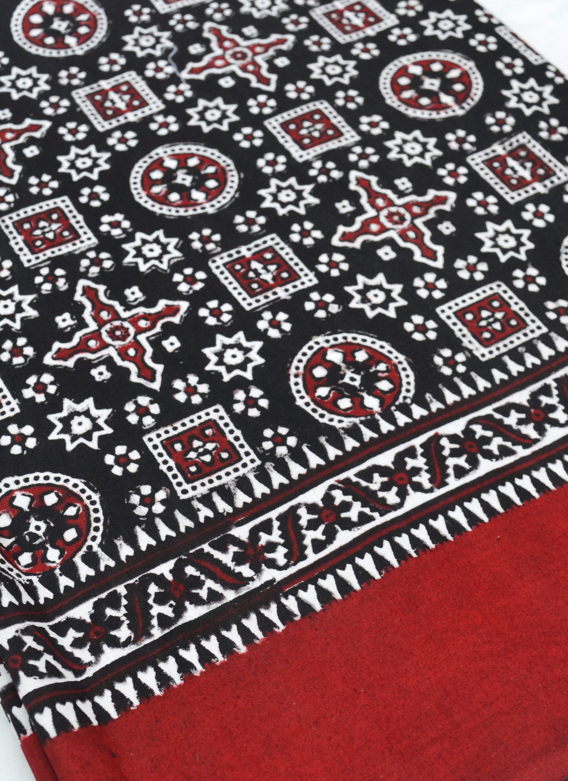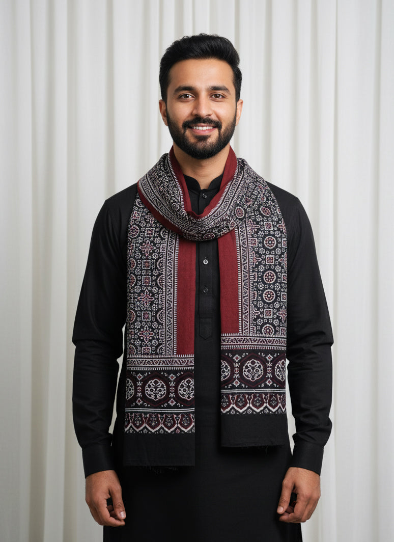 Premium Hand Block Printed Ajrak Jileb Black & Maroon – Single Paat | Organic Dyed Cotton Ajrak for Men