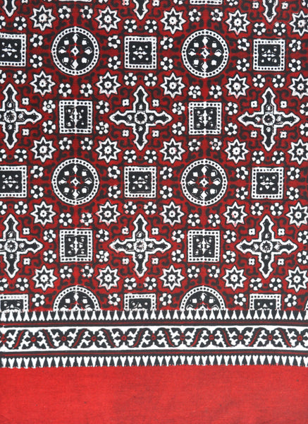 Premium Hand Block Printed Ajrak Jileb Maroon & Black – Single Paat | Organic Dyed Cotton Ajrak for Men