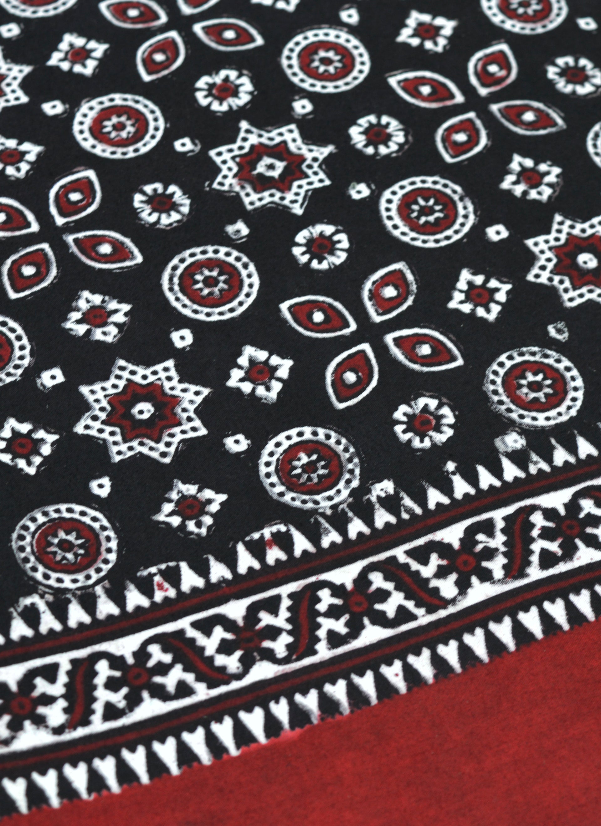 Celebrate the legacy of Sindhi artistry with our Premium Hand Block Printed Ajrak Kharik Black and Maroon – Single Paat, a masterpiece that blends traditional craftsmanship with timeless elegance. Made from Chairman Cotton, this shawl is soft, durable, and comfortable for all occasions.