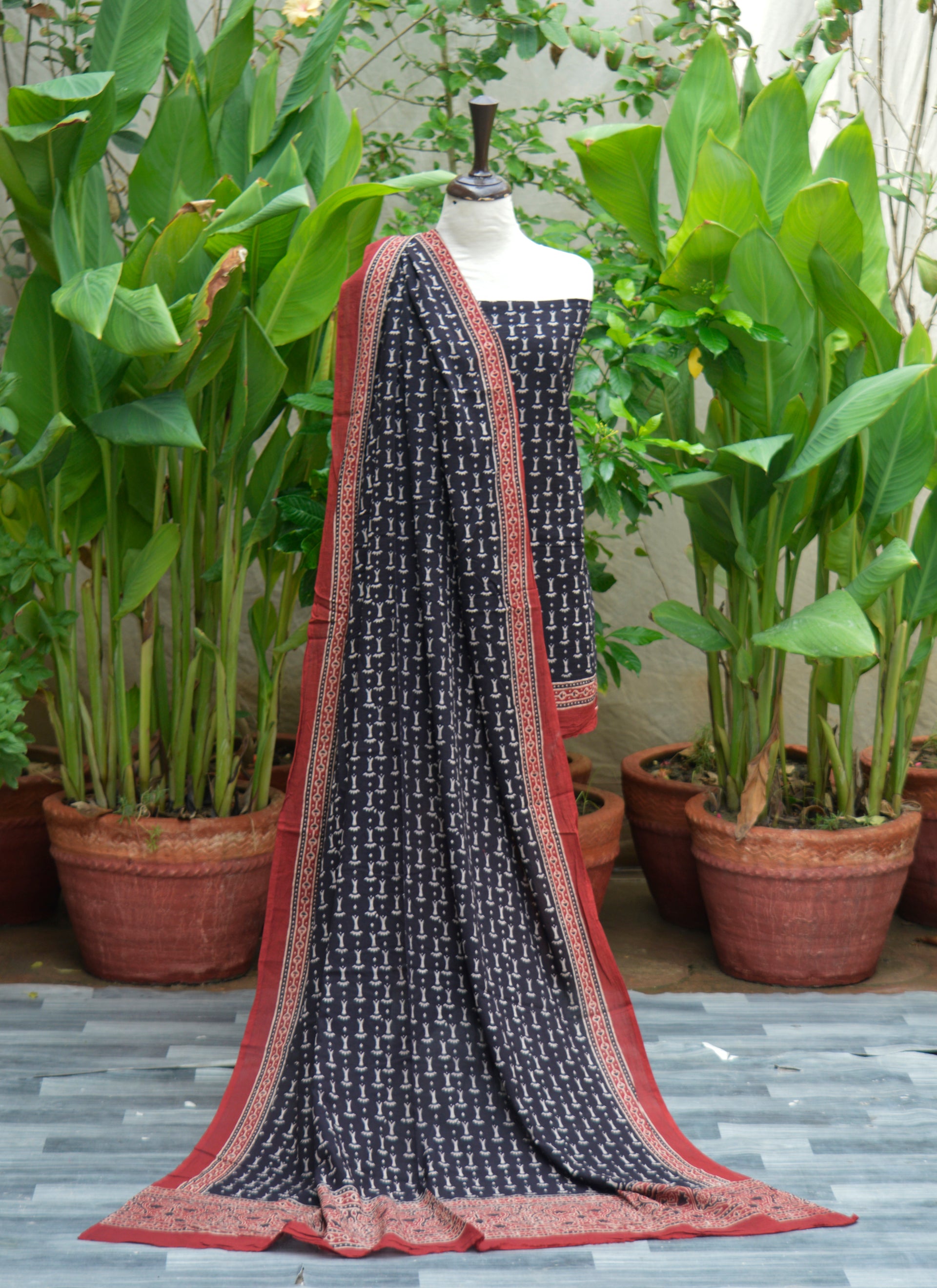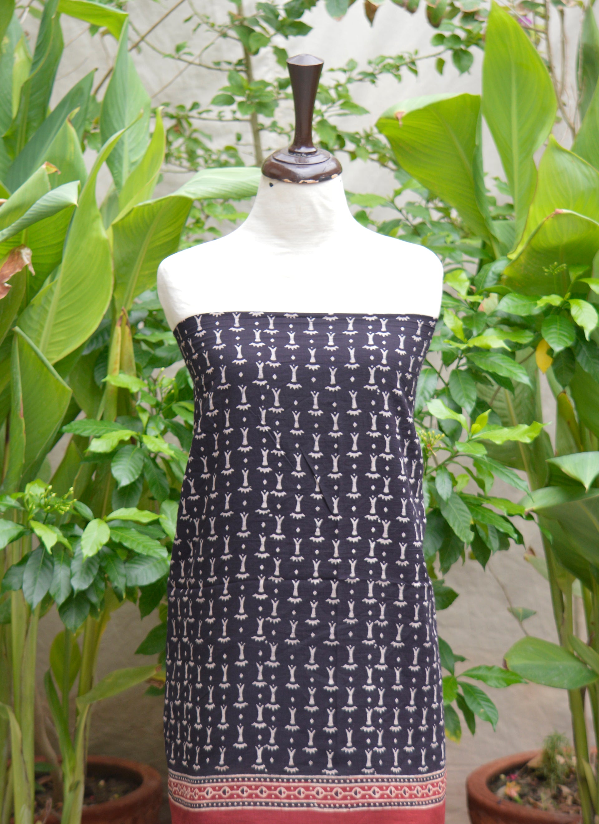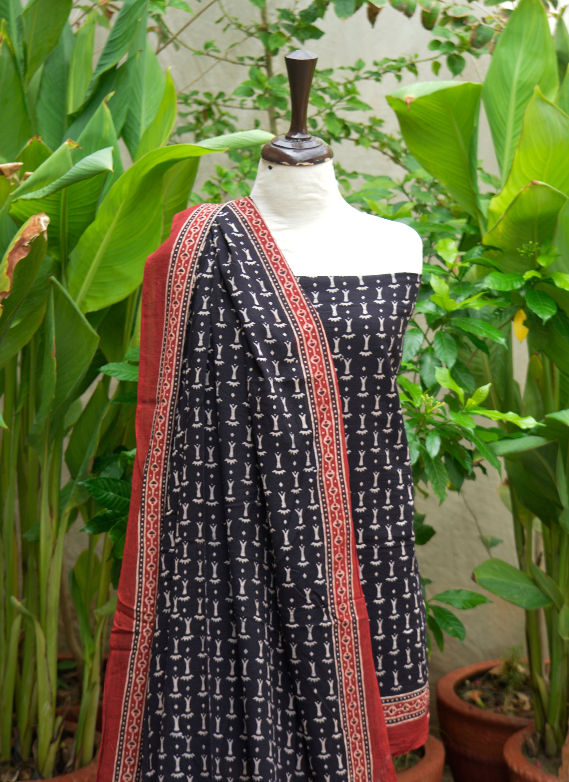Handcrafted using organic dyes and traditional Ajrak block printing techniques, this piece showcases intricate patterns in a striking black and bone contrast. Created by skilled Sindhi artisans, it reflects a deep connection to history, sustainability, and timeless fashion.