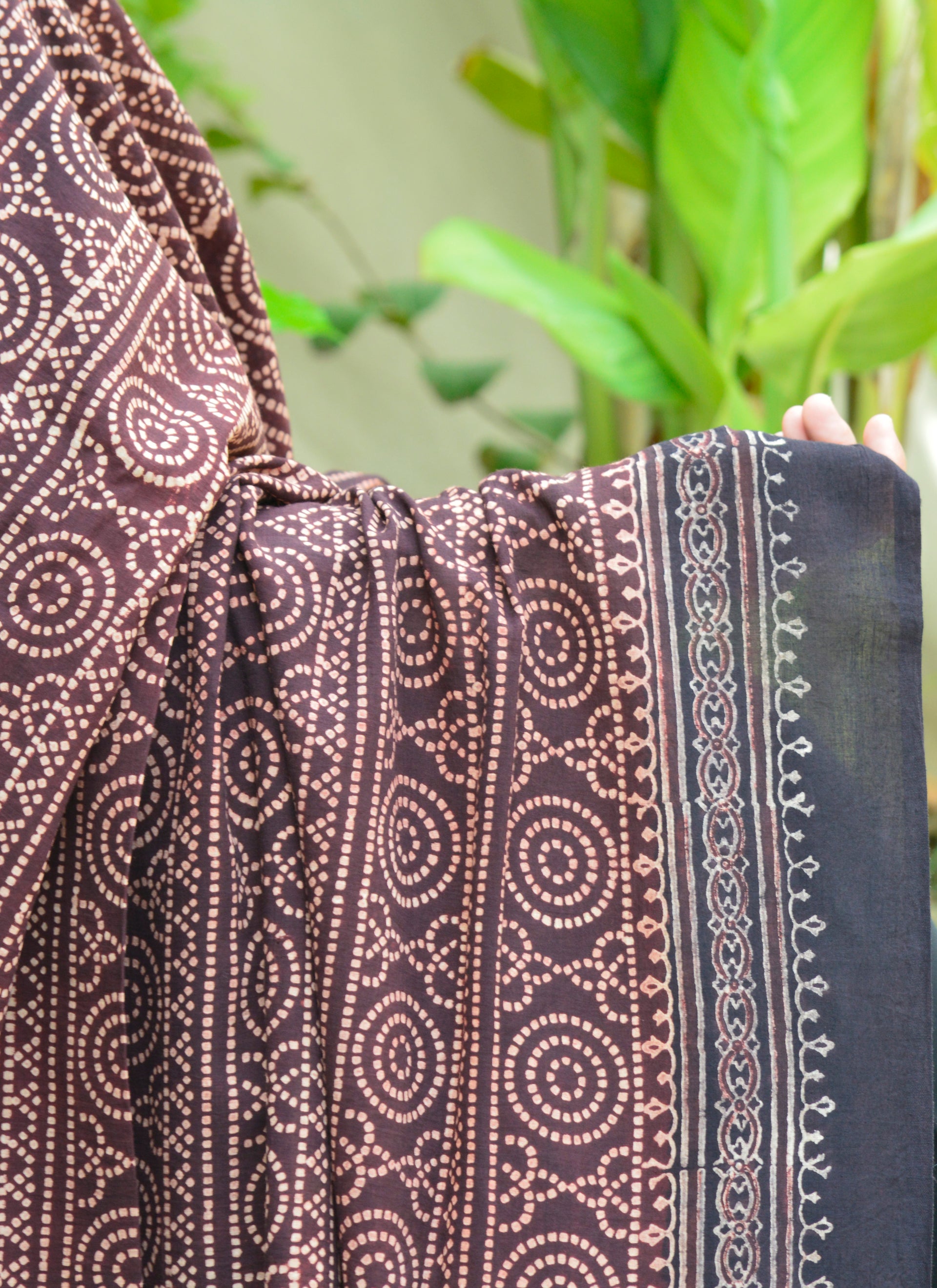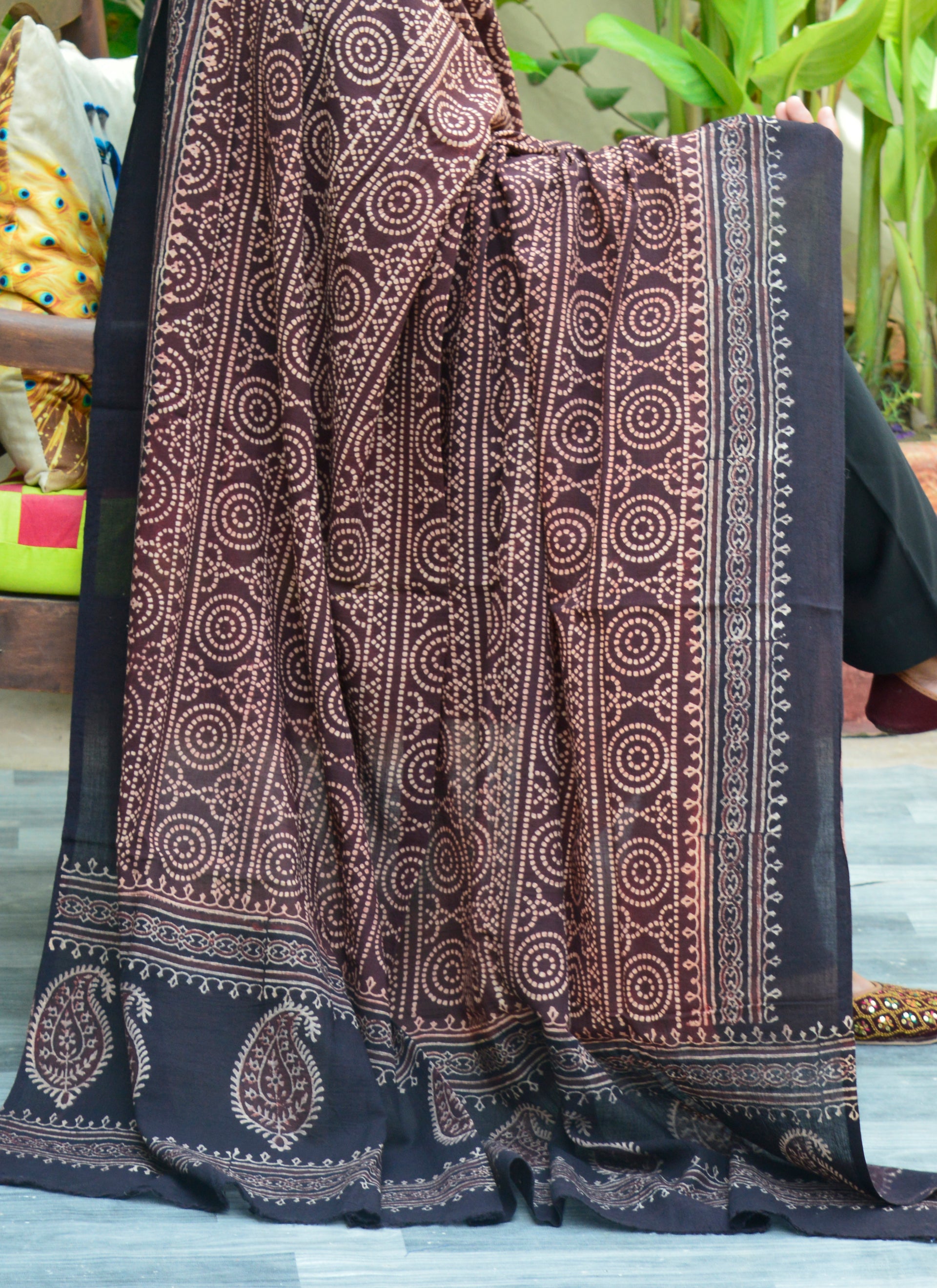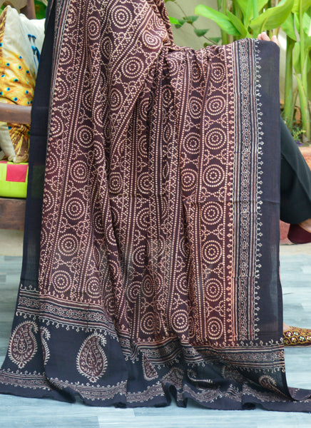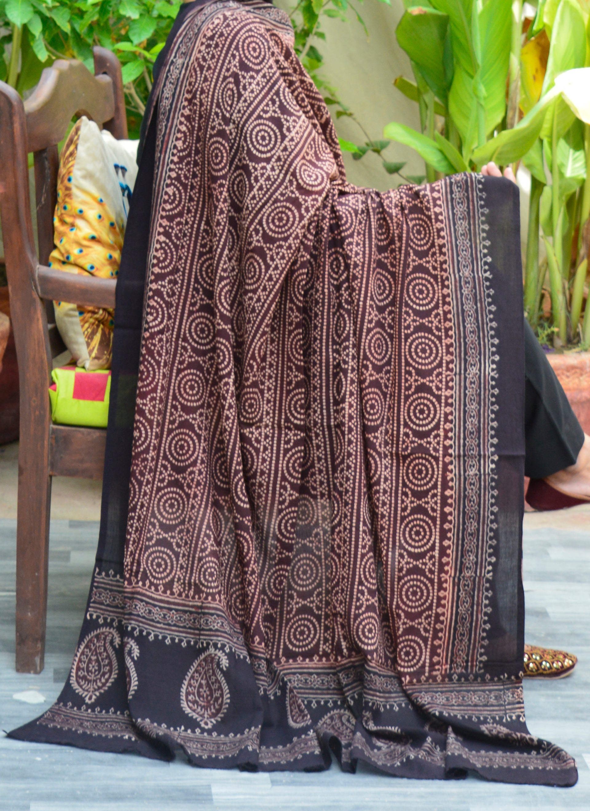 Experience the beauty of authentic craftsmanship and sustainable fashion with our Organic Dye Hand Block Printed Ajrak Chunri Chaadar, a perfect choice for those who value tradition alongside modern fashion trends.
