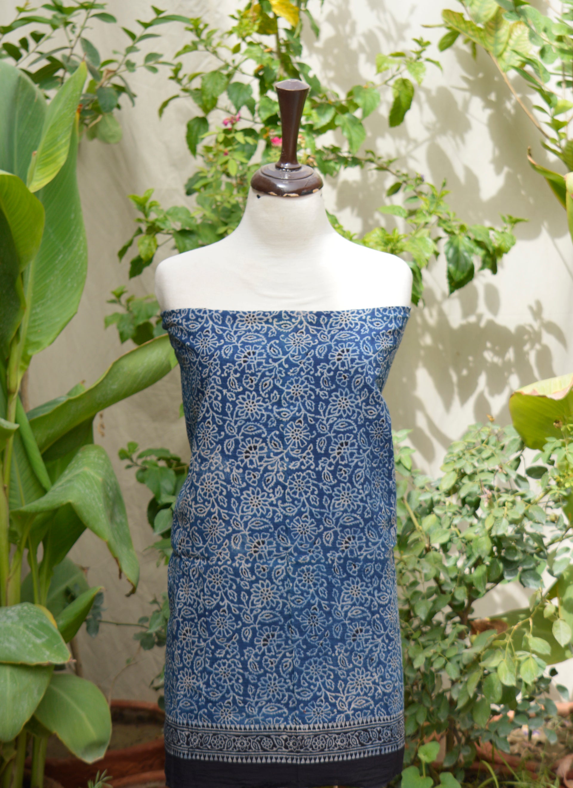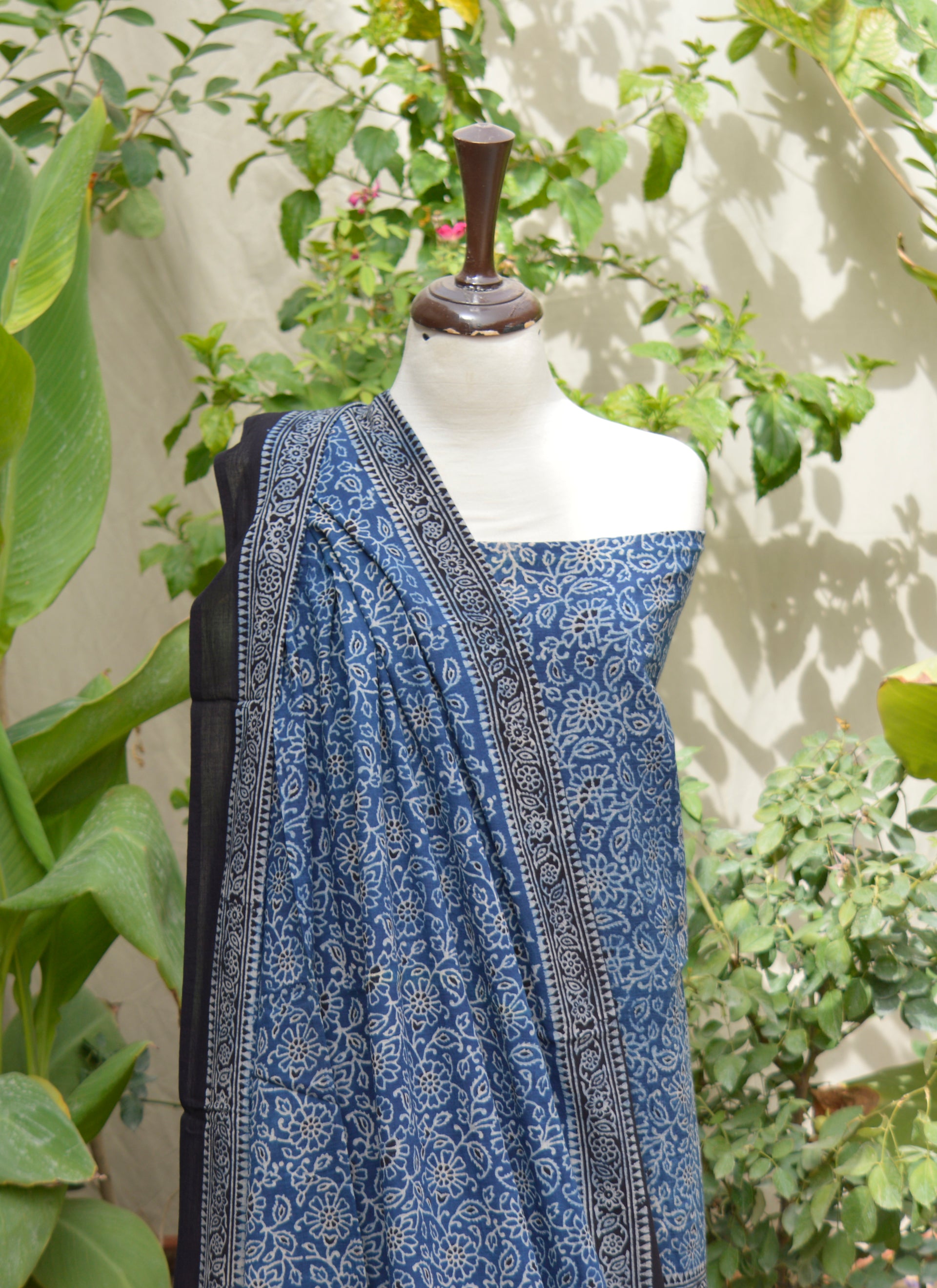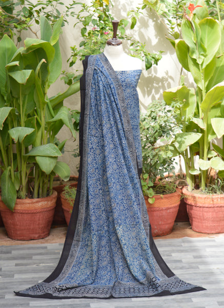Ajrak Indigo Floral Unstitched Two-Piece – Organic Dye Hand Block Printed Lawn