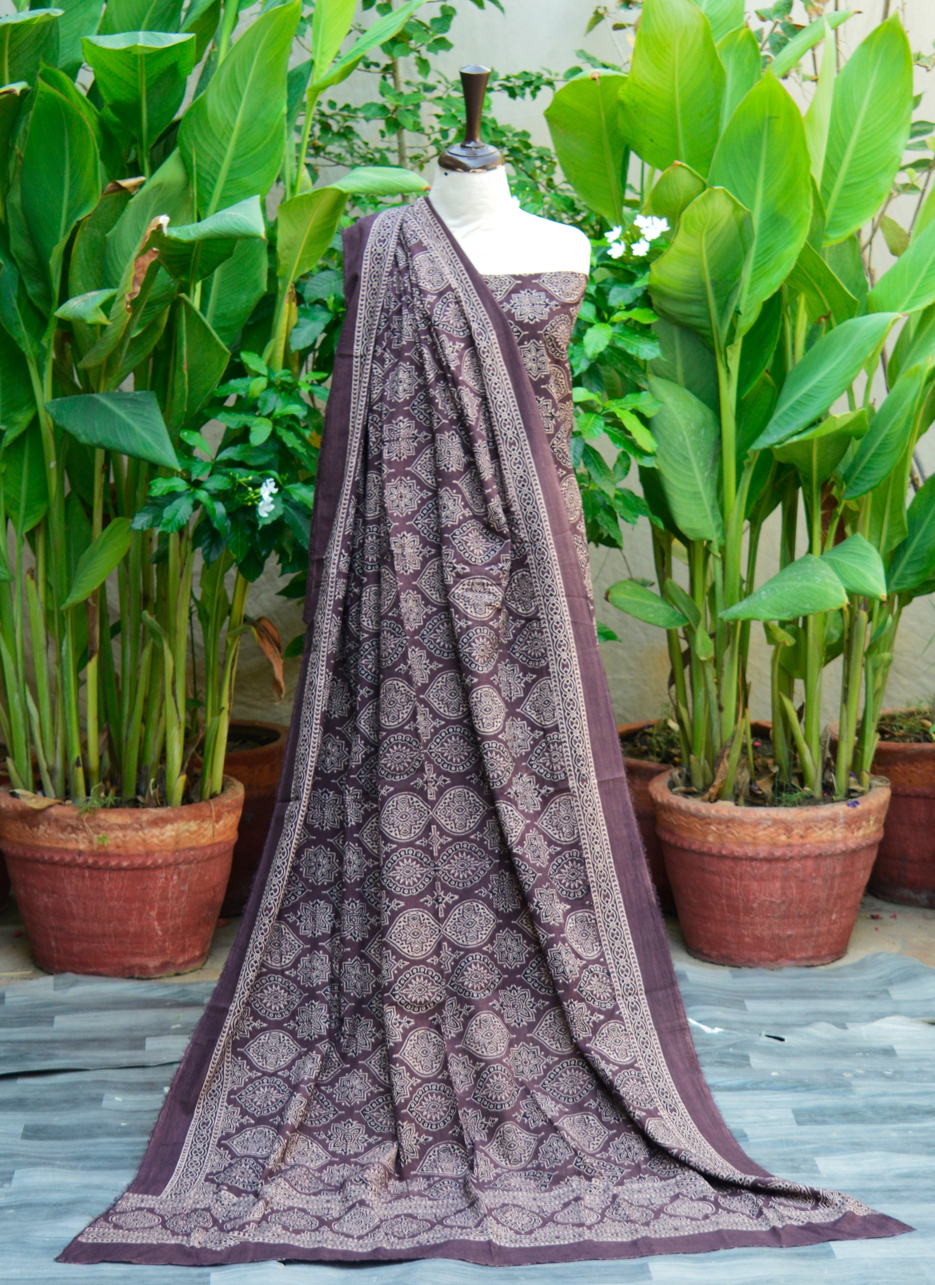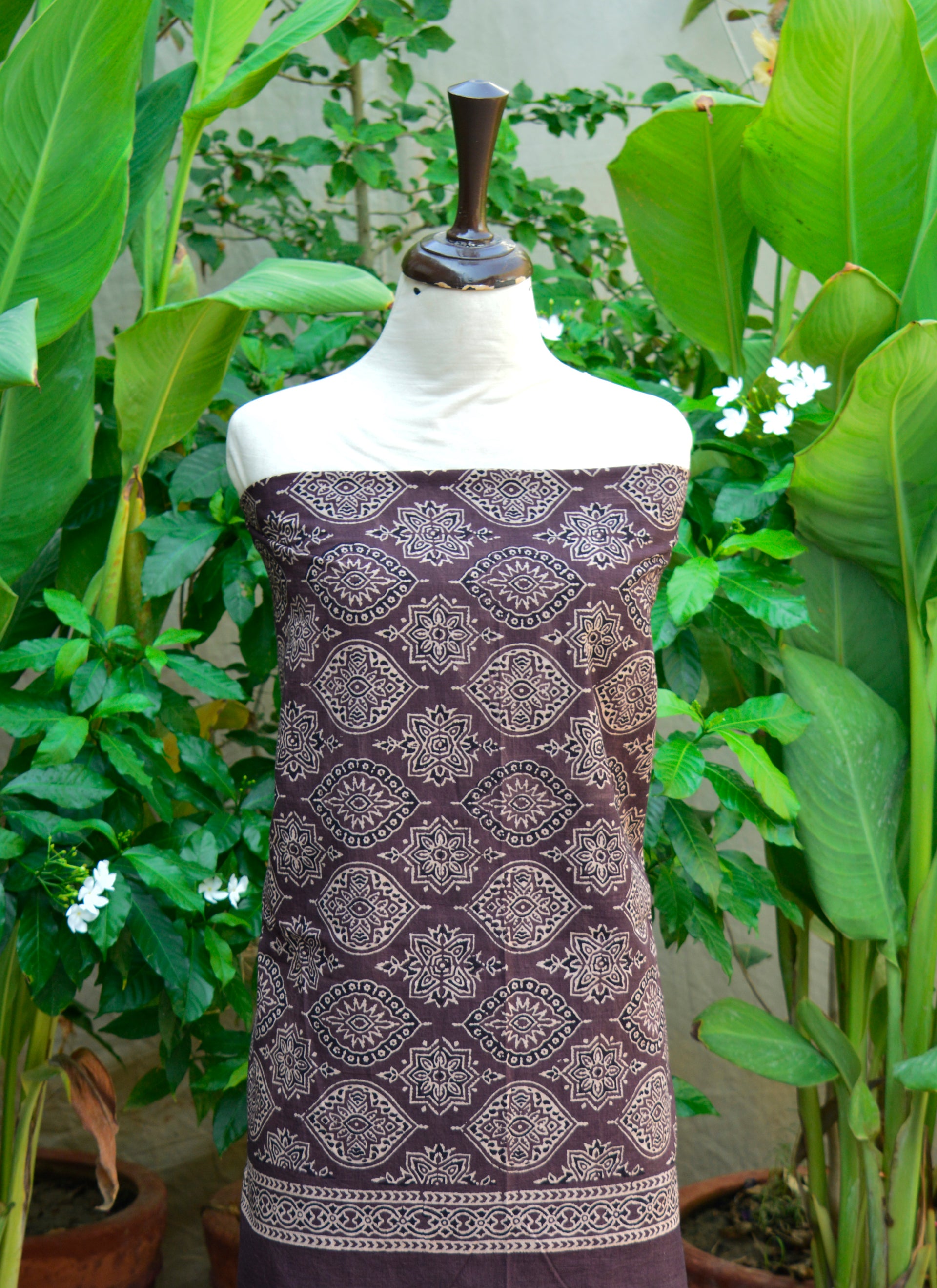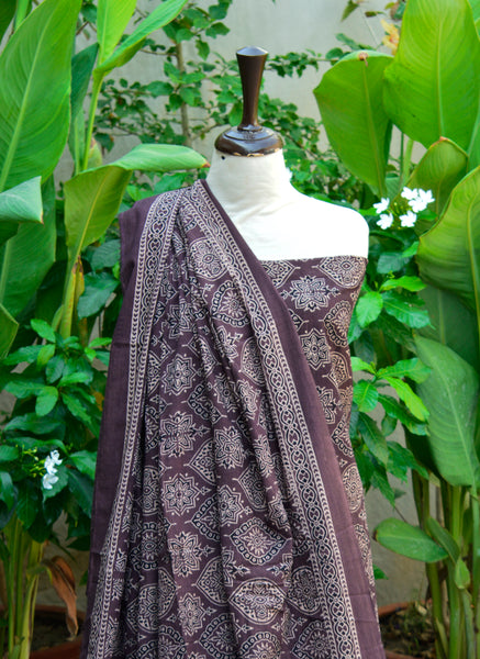 Organic Dye Hand Block Print Badam Feminin Nightshade Ajrak Design Dress – Self-Border Unstitched Two-Piece