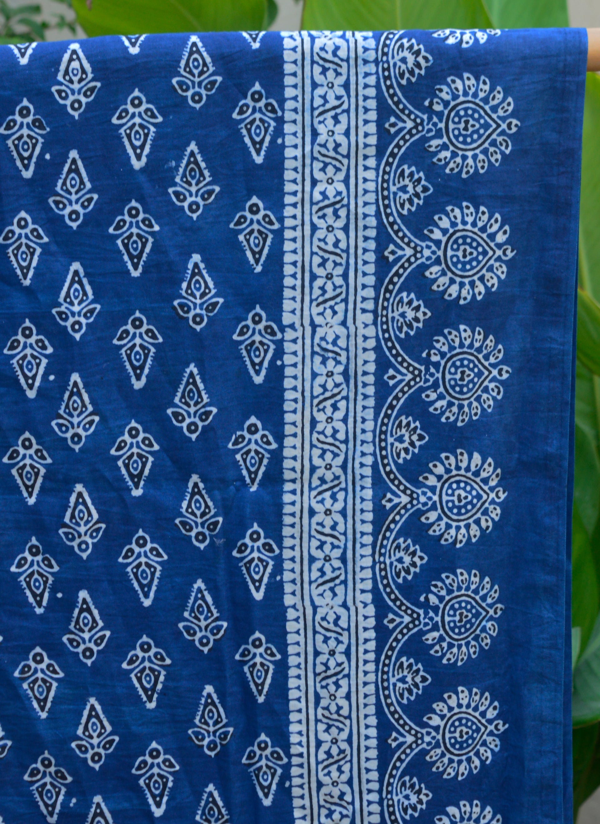 Elevate your modest fashion with this Organic Dyed Hand Block Printed Ajrak Hijab in indigo, featuring a delicate floral butta pattern. Crafted from premium cotton using natural, skin-friendly dyes, this lightweight hijab is breathable, soft, and perfect for everyday wear. With a generous length of 79 inches and width of 30 inches, it offers versatile styling options while preserving Sindhi heritage through traditional Ajrak craftsmanship. A timeless choice for eco-conscious women who value tradition, culture, and sustainable fashion.