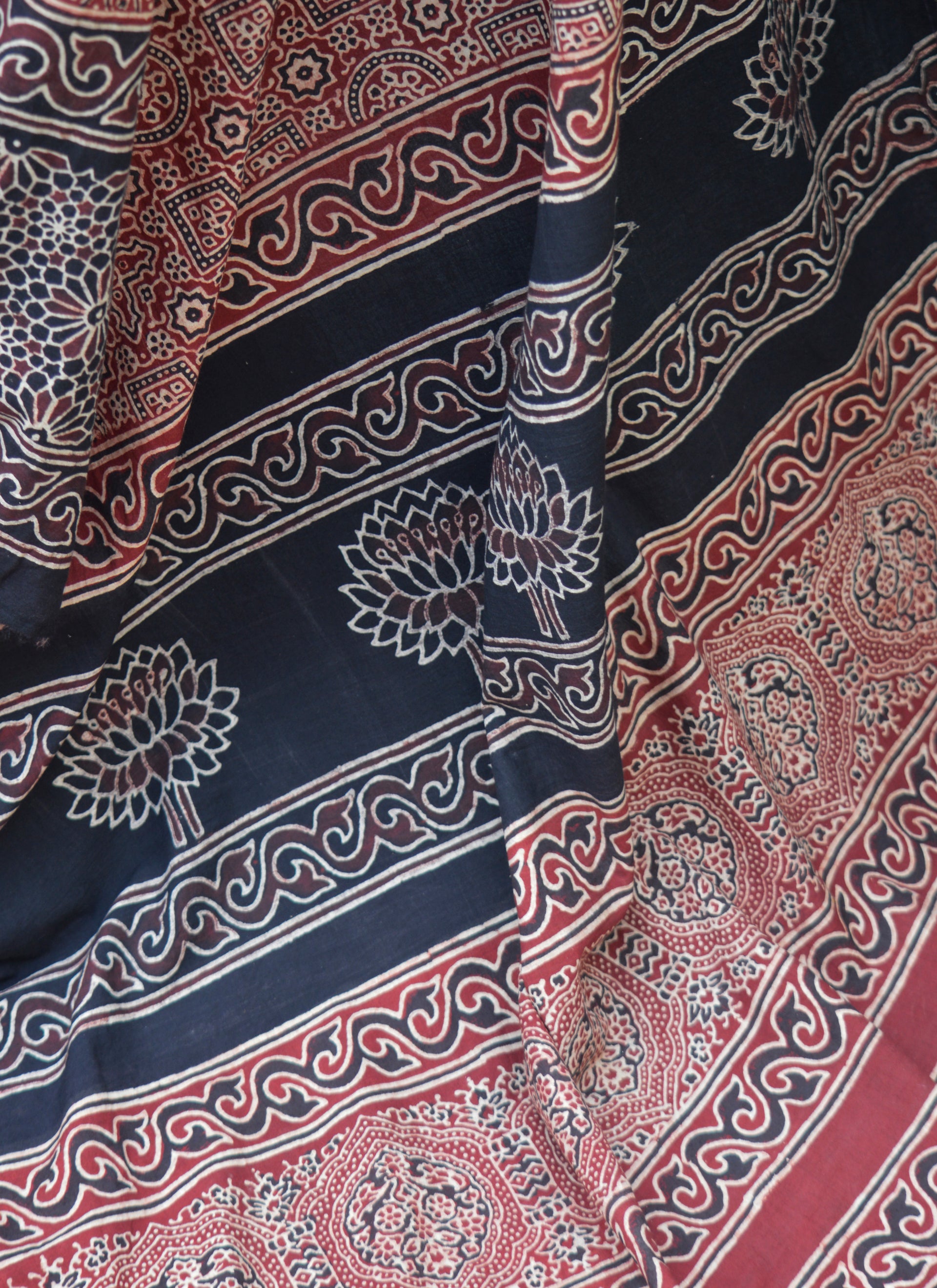 Each Ajrak Saree Floral Contrast is handcrafted by skilled Sindhi artisans, giving every piece its own unique character. Minor variations in color or pattern are a testament to its handmade origins, adding to the charm and authenticity of the saree. While colors may appear slightly different on screens, the unmatched beauty and craftsmanship of the saree remain consistent.