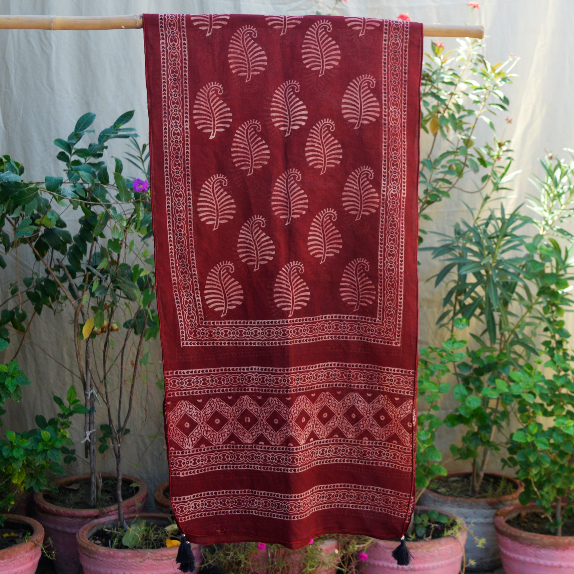 Ajrak Leafy Scarf Mehroonish Red: A Sustainable Style Statement