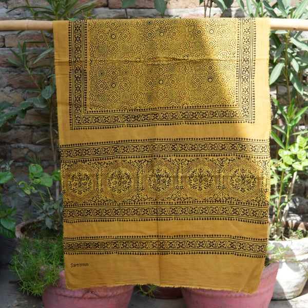 Embrace tradition with our Organic Dye Hand Block Print Mustard Ajrak Scarf. This stunning accessory combines centuries-old craftsmanship with contemporary fashion, making it a must-have for eco-conscious enthusiasts. In addition, this scarf is handcrafted using natural dyes, showcasing exquisite Ajrak designs. These intricate floral patterns not only enhance its beauty but also add elegance to any outfit.