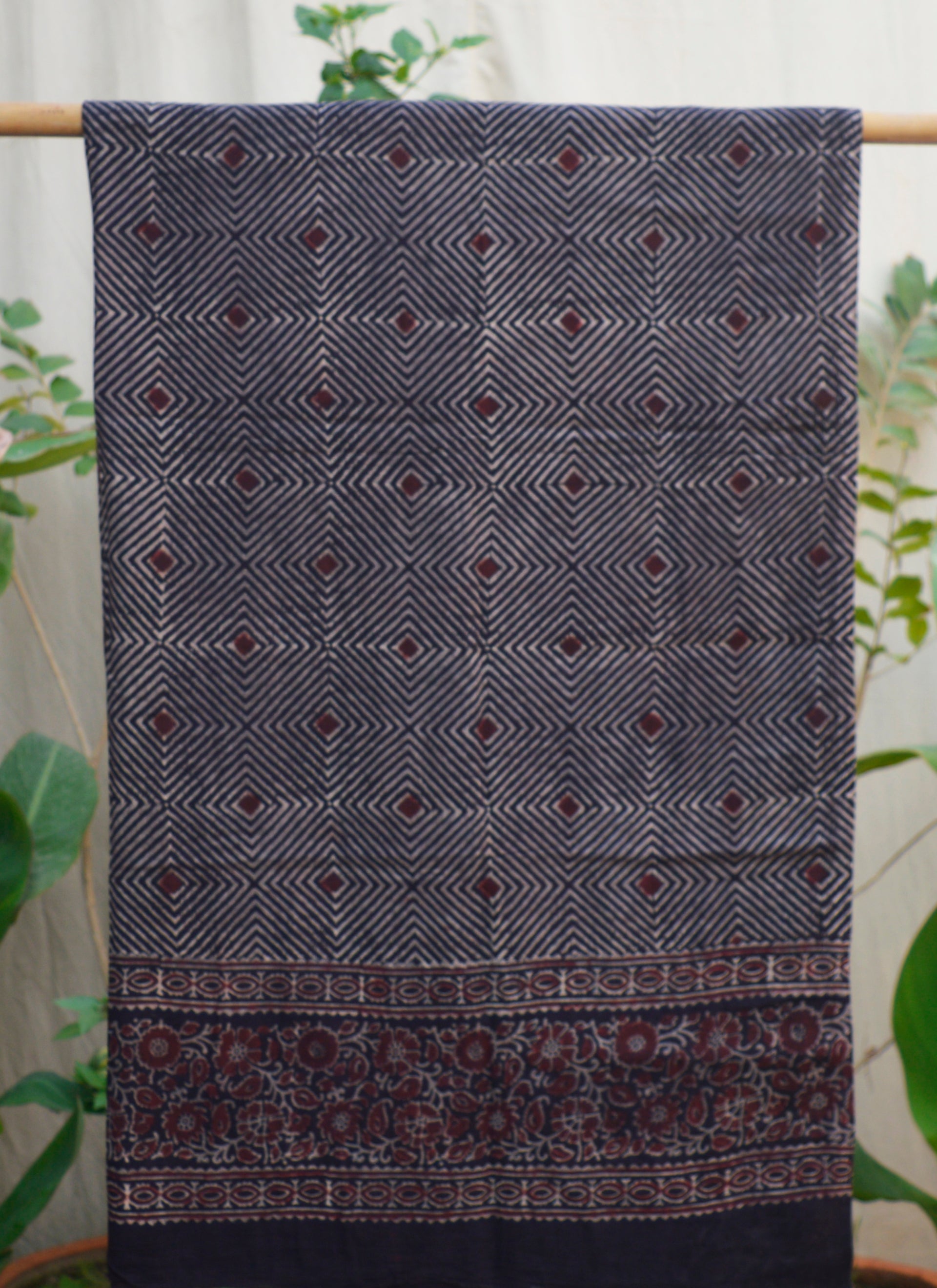 Elevate your wardrobe with the Organic Dye Hand Block Printed Ajrak Khayal Black Unstitched Shirt Piece, a seamless blend of tradition and modern sophistication. Handcrafted by skilled artisans, this exquisite piece features the rich heritage of Ajrak printing, renowned for its intricate geometric and floral patterns.