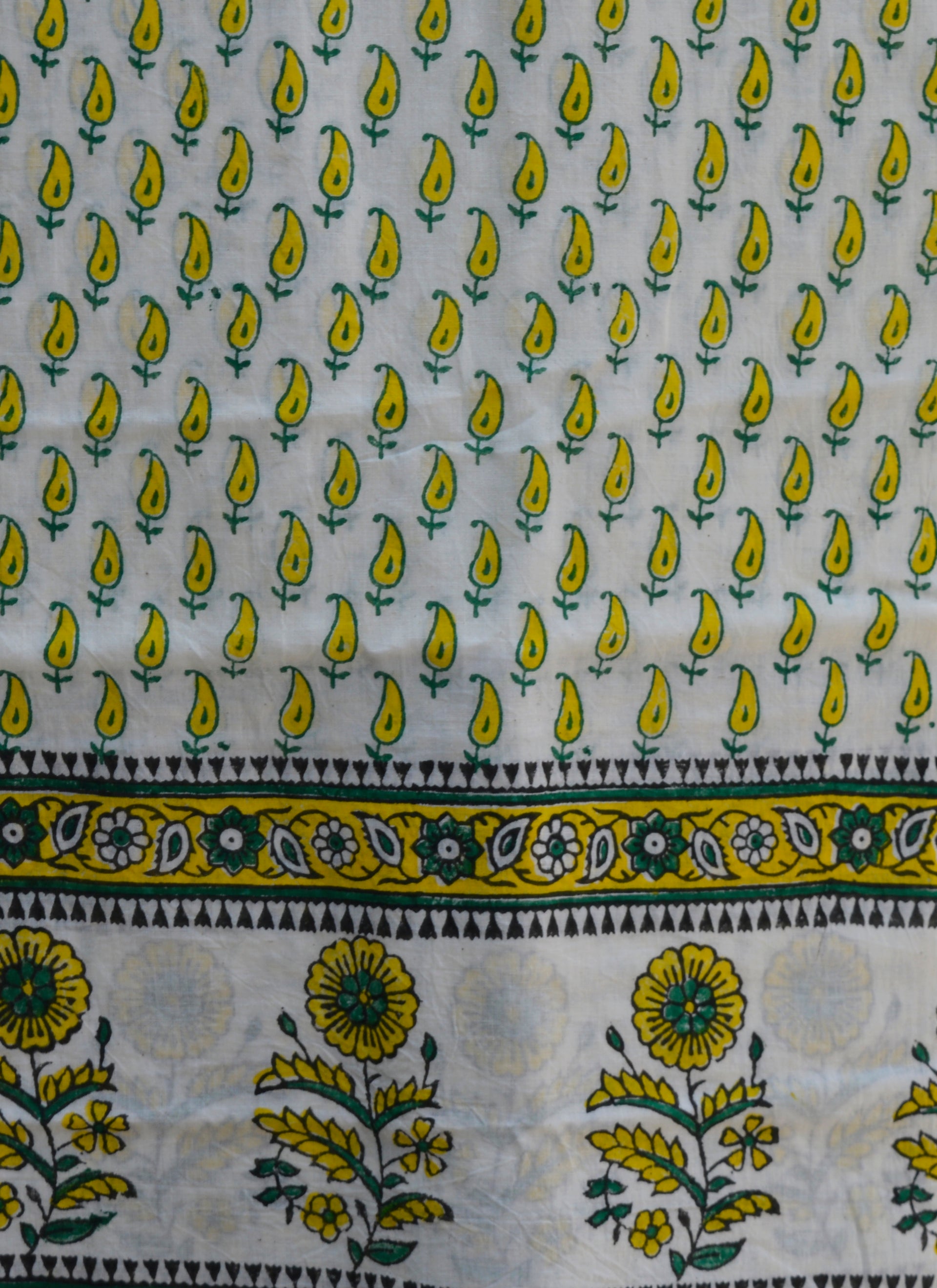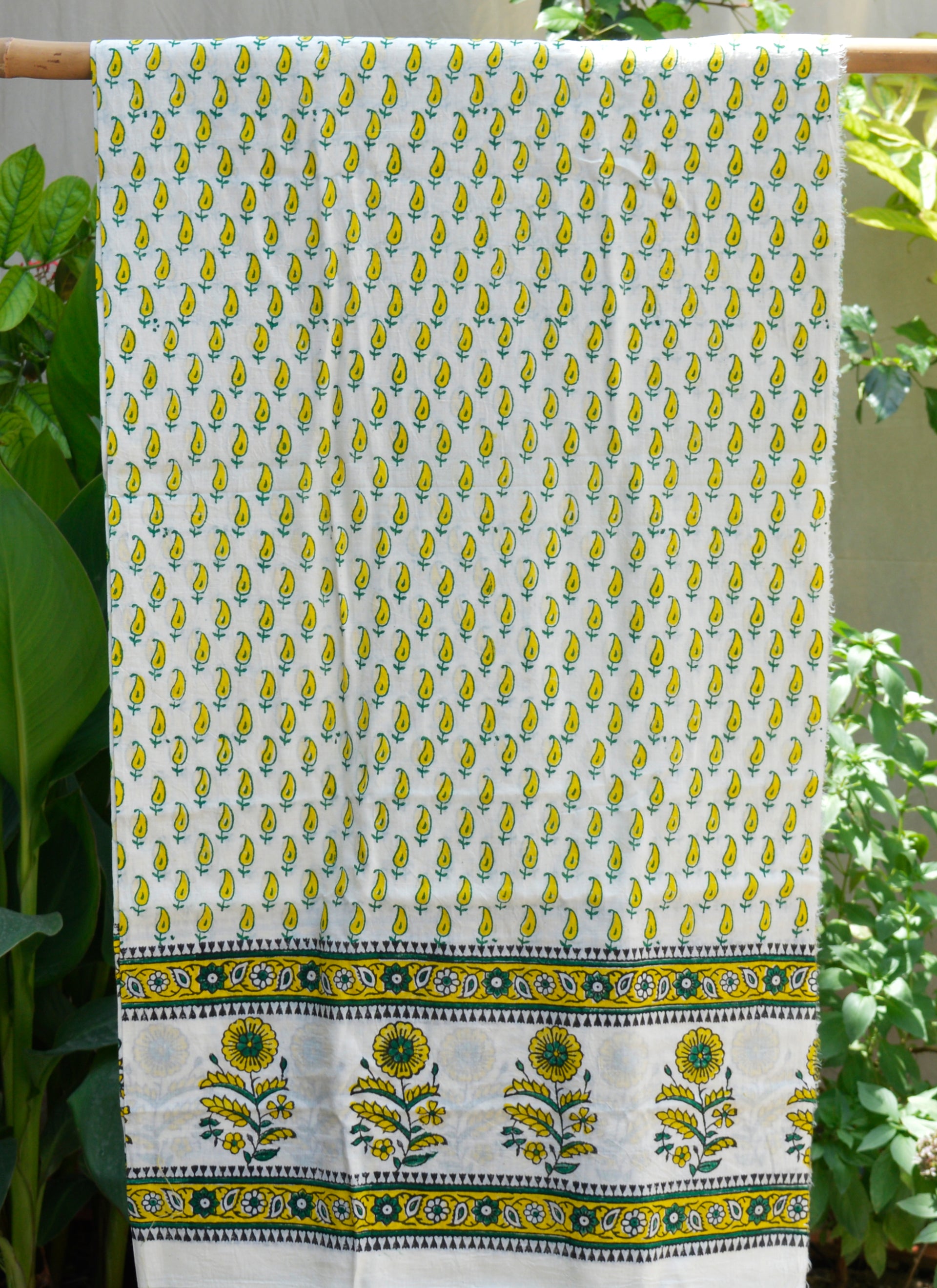 Brighten your wardrobe with this vibrant Hand Block Printed Kerry Yellow Kurta Fabric, crafted from soft, breathable lawn material. Featuring a traditional Kerry (paisley) motif in an uplifting yellow shade, this unstitched fabric piece measures 2.5 meters in length and 44 inches in width, perfect for a custom-fit kurta.
