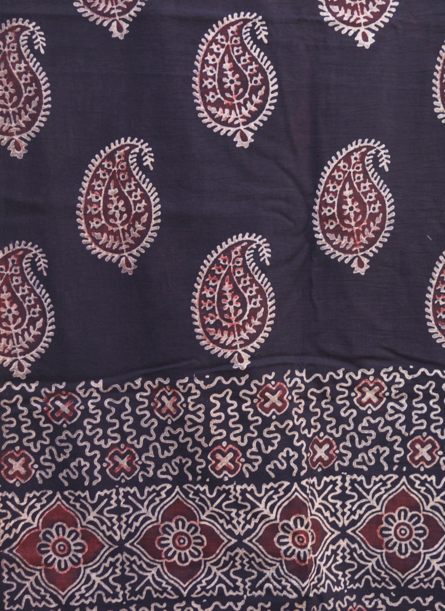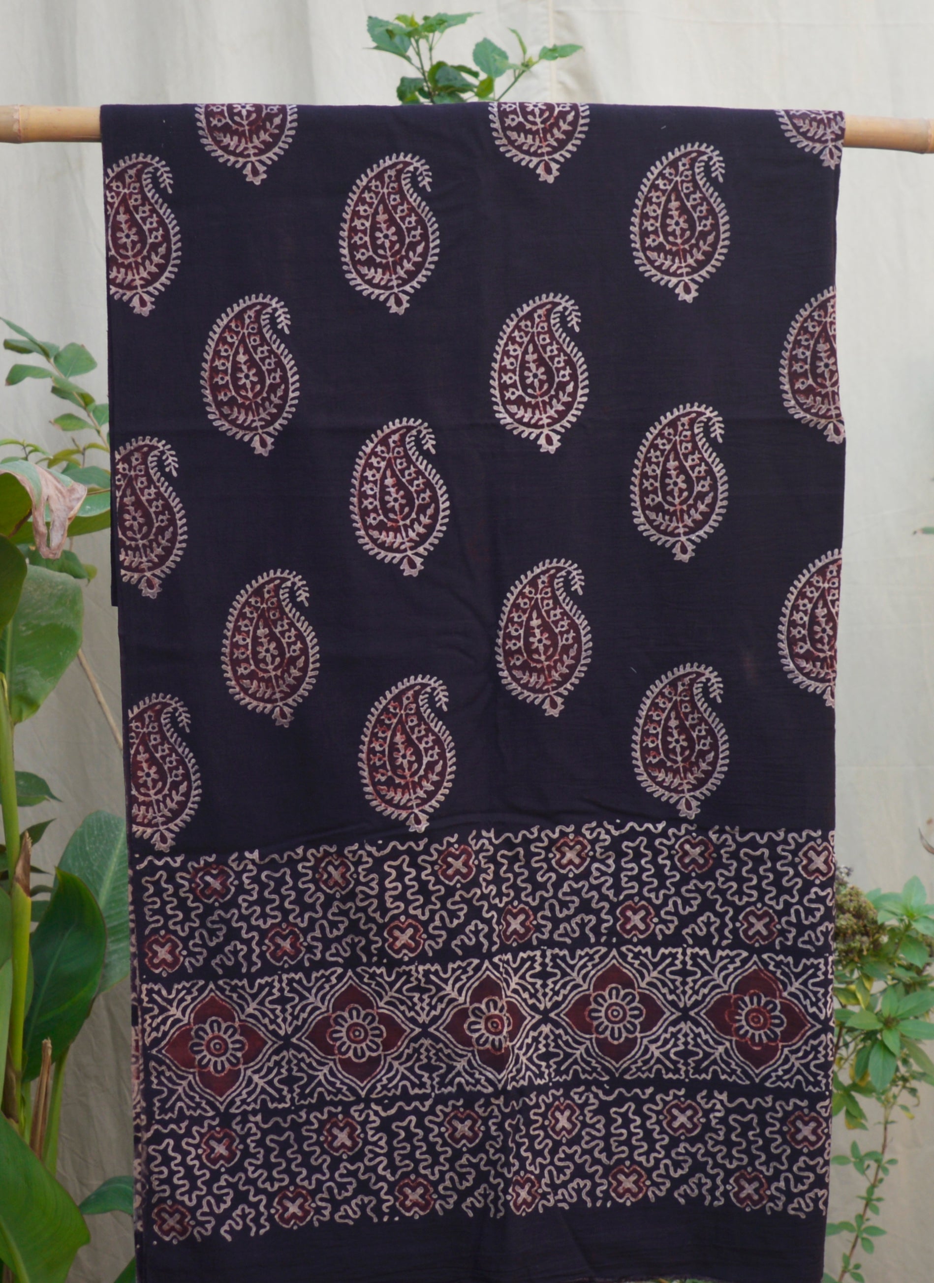 Made from premium-quality cotton, this fabric ensures breathability, comfort, and durability, making it an ideal choice for all-day wear in any season. Dyed with organic, eco-friendly dyes, the deep black base with striking Ajrak patterns adds a touch of elegance and sophistication to your outfit. The 2.5-meter length and 44-inch width offer versatility, allowing you to design a custom kurta, tunic, or traditional attire tailored to your style.