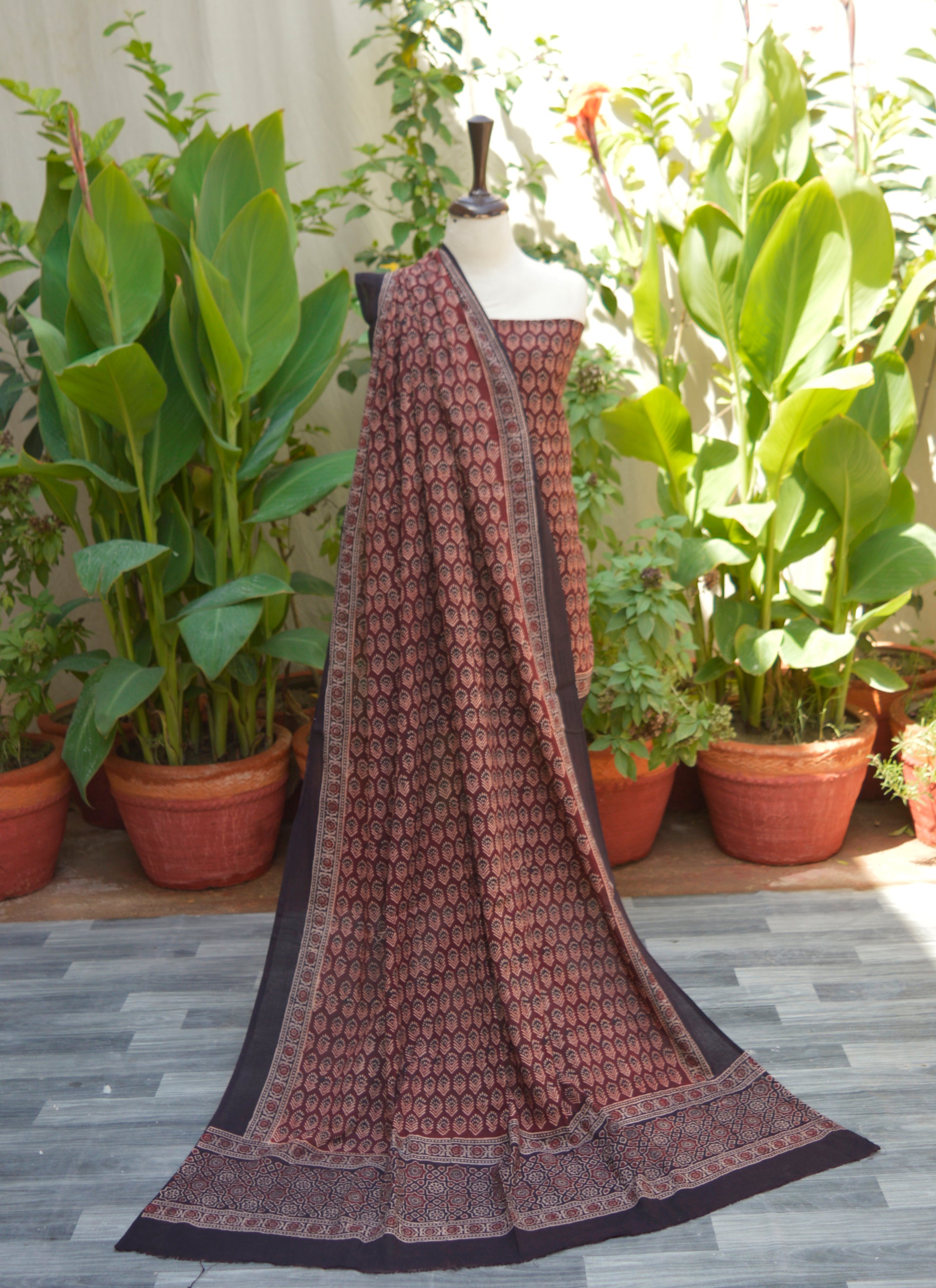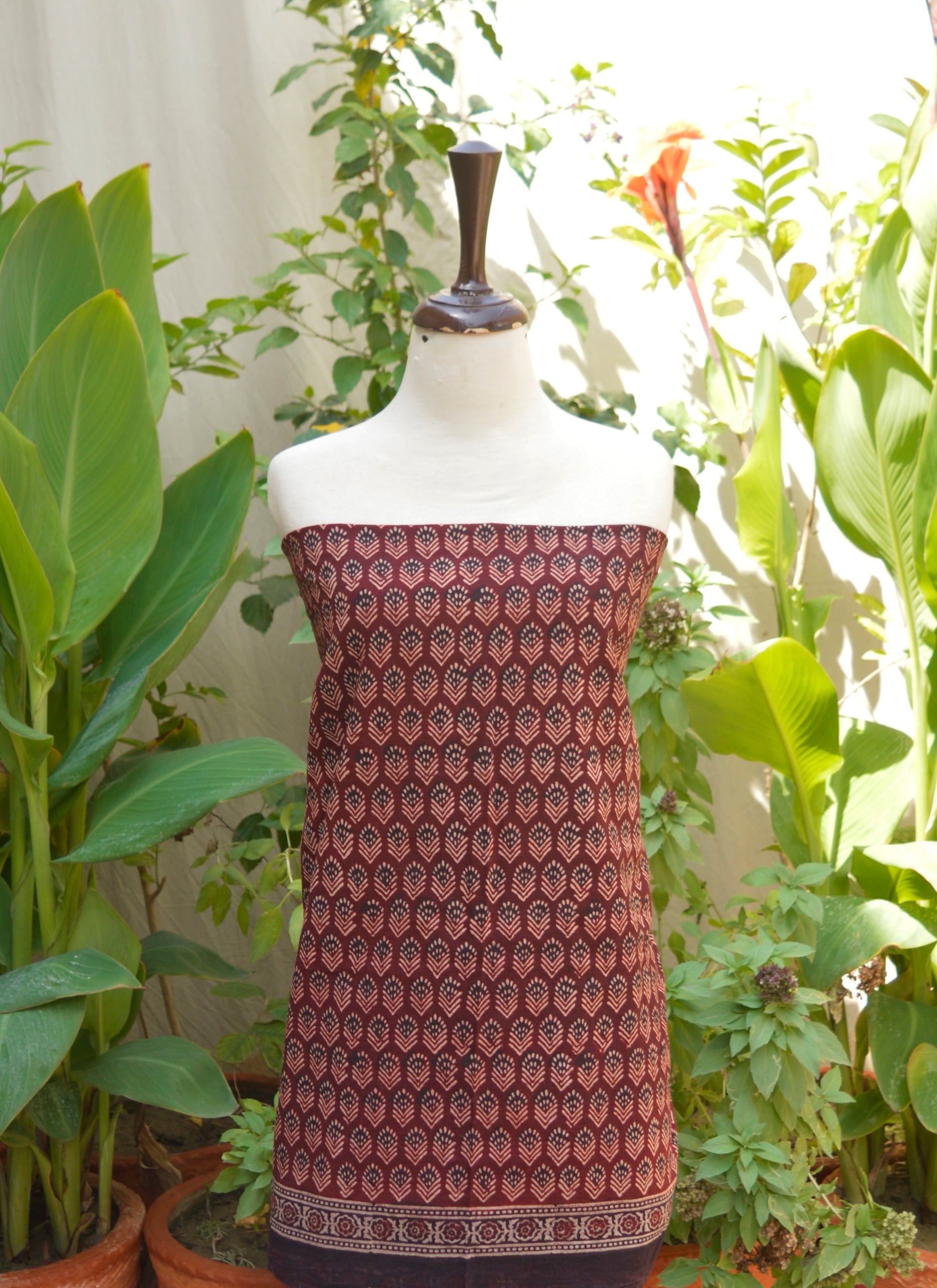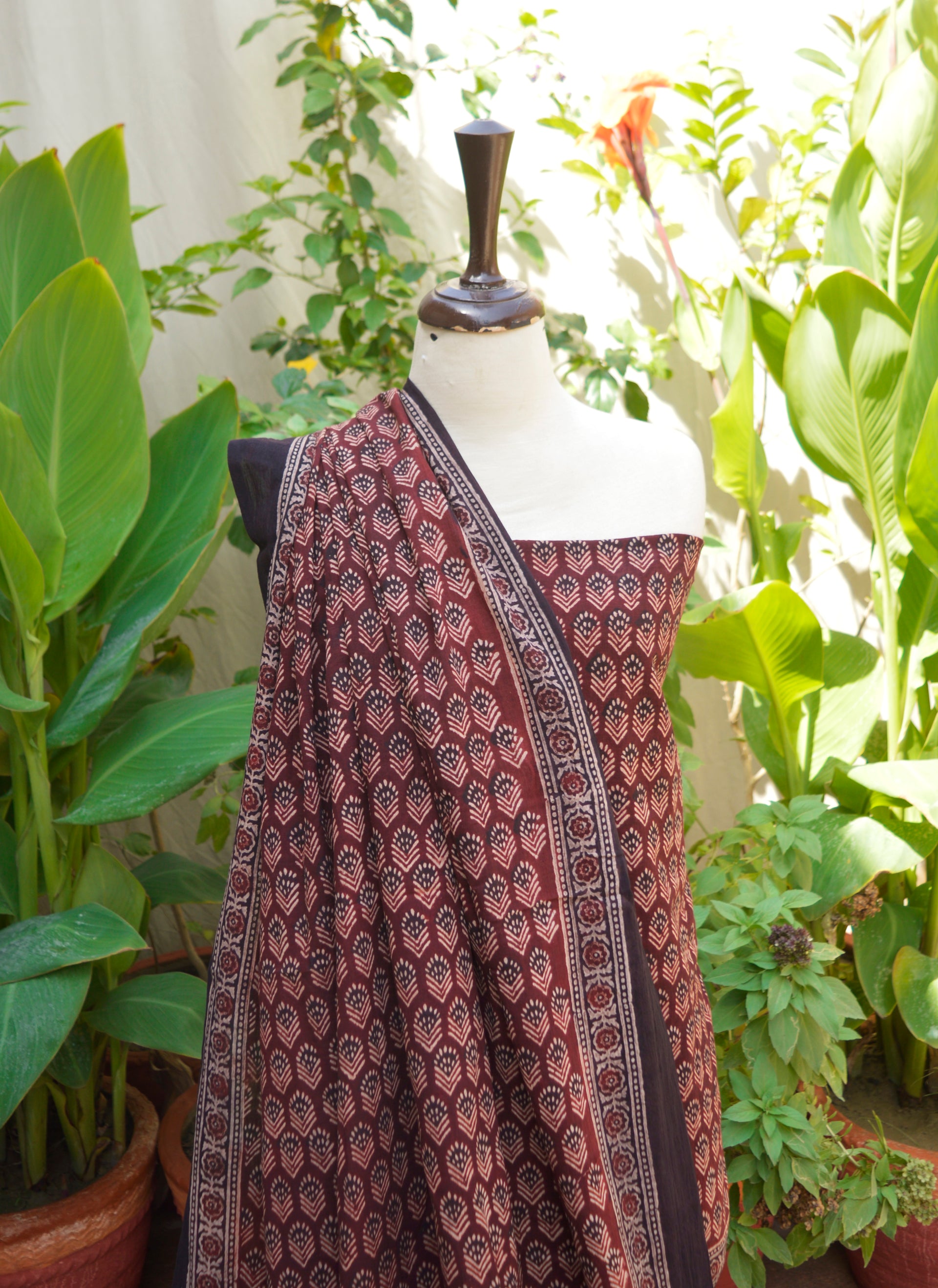 Ajrak Floral Maroon Dress – Two-Piece Set (Shirt & Dupatta) | Premium Lawn