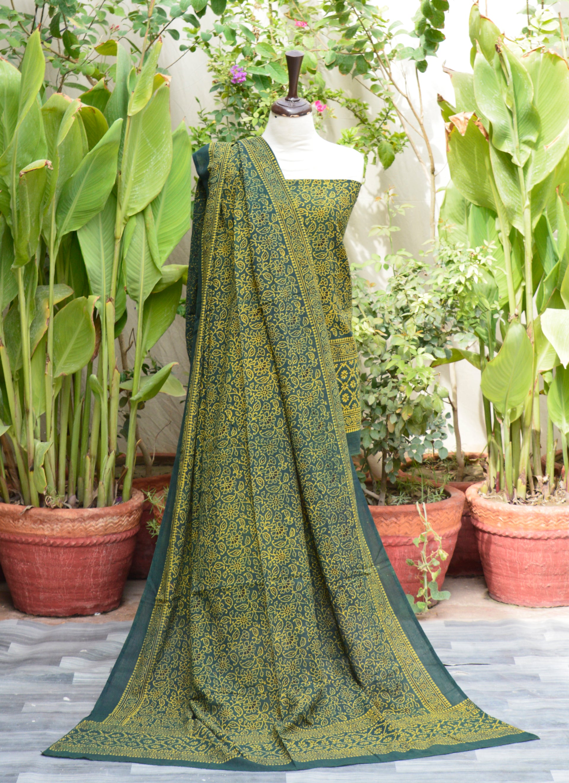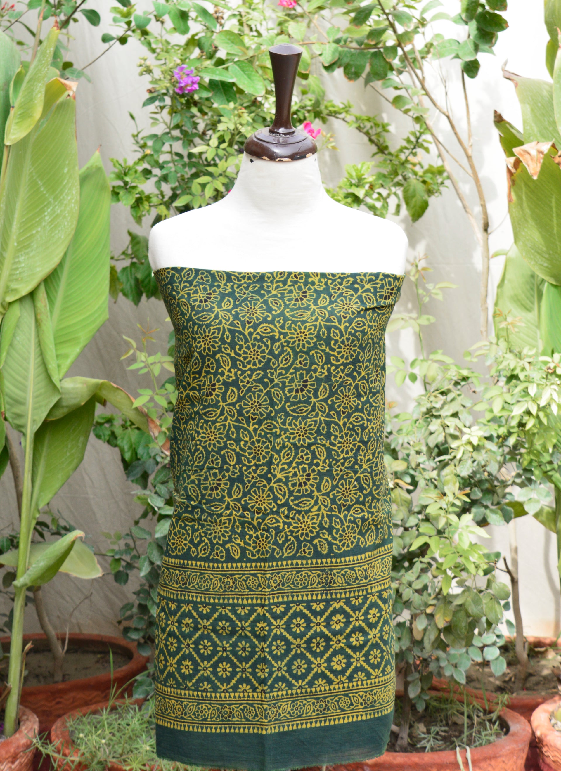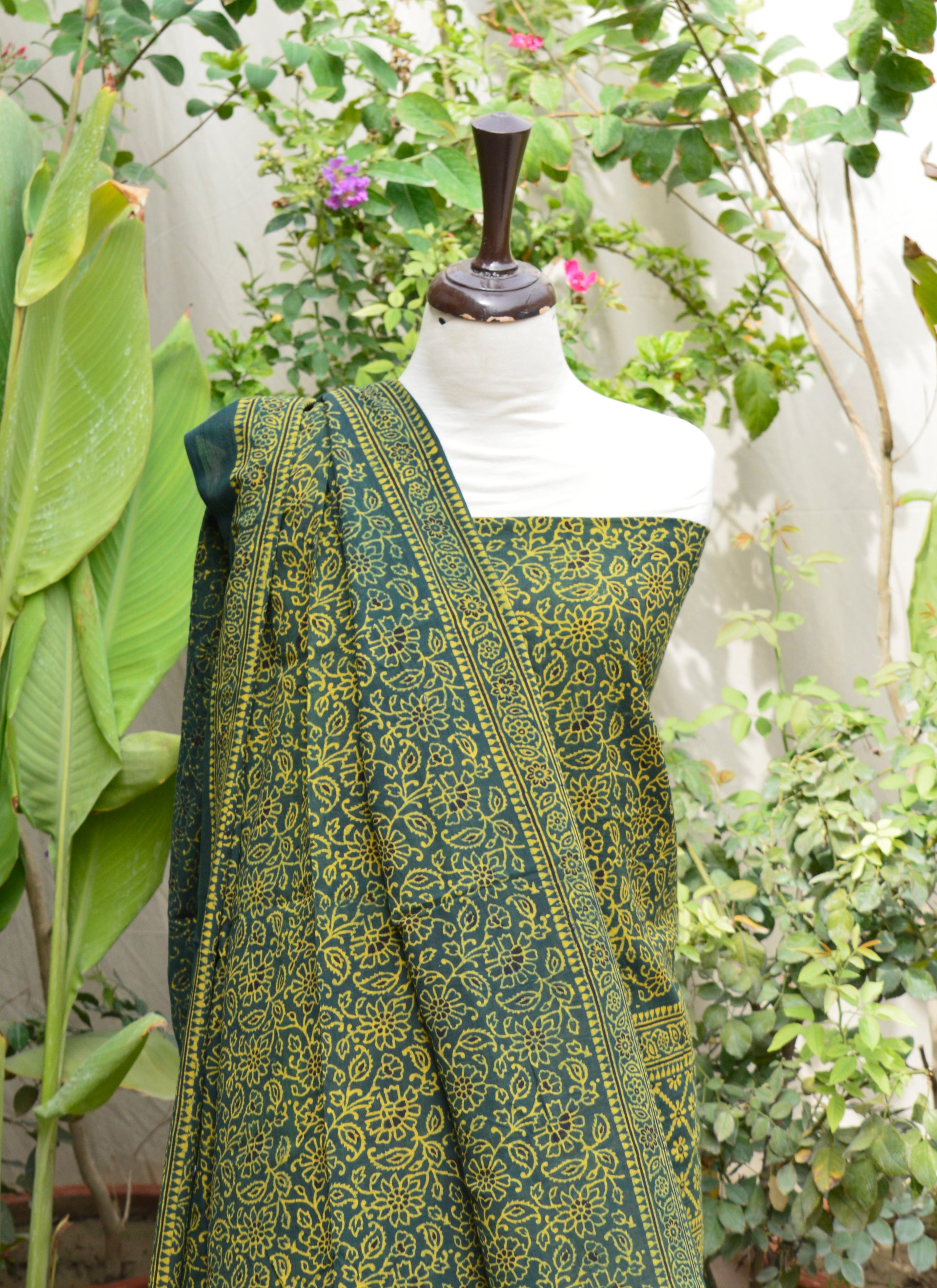 Discover the perfect fusion of tradition and contemporary fashion with our Organic Dye Hand Block Printed Ajrak Green Floral Bel. Handcrafted by skilled artisans, this elegant piece highlights the rich heritage of Ajrak printing, blending timeless...