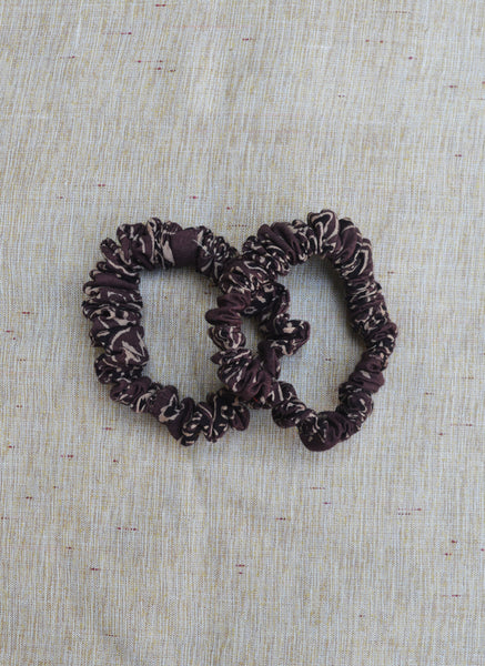 The Ajrak Badam Feminin Nightshade Scrunchie Set of 2 is a thoughtfully curated pair of handcrafted hair accessories inspired by authentic Sindhi Ajrak heritage. Made from organically dyed cotton and hand block printed using traditional Ajrak techniques, each scrunchie features the elegant Badam motif in a rich nightshade color palette.
