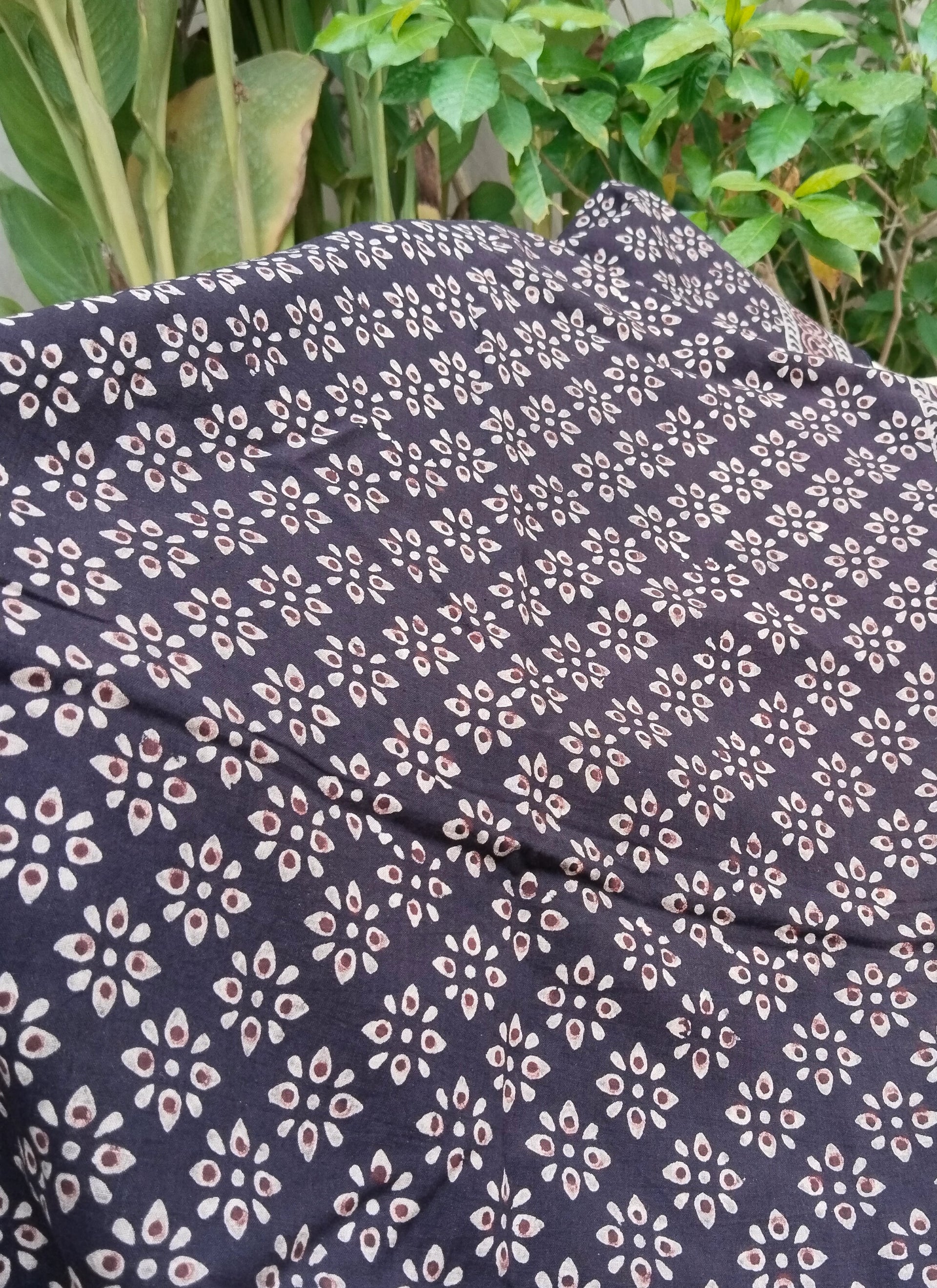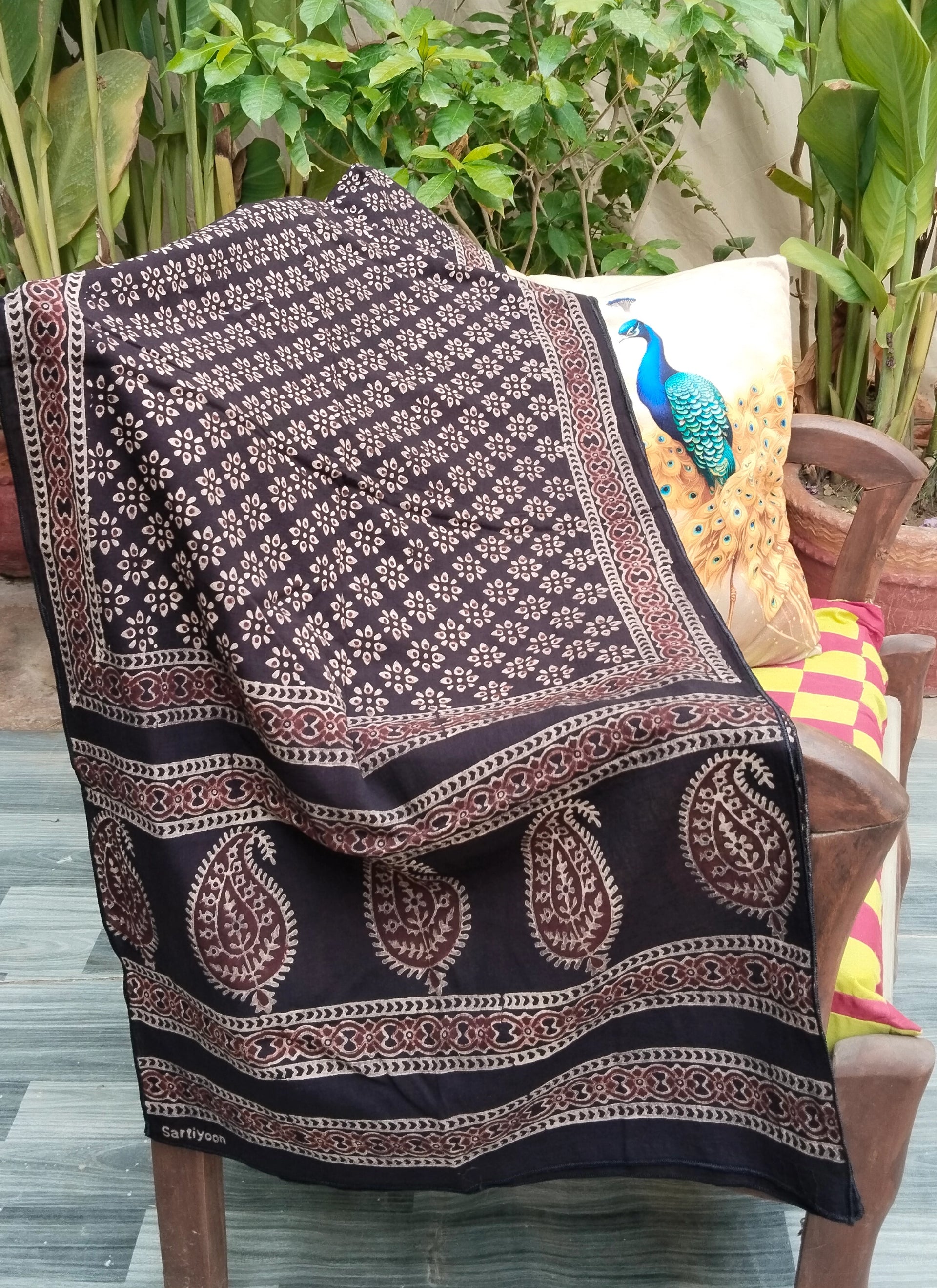 The Ajrak Black Floral Scarf is a refined blend of traditional Sindhi craftsmanship and timeless elegance. Handcrafted by skilled artisans, this scarf features intricate floral motifs created through the centuries-old Ajrak hand block printing technique, an art form celebrated for its cultural significance and exquisite detail.