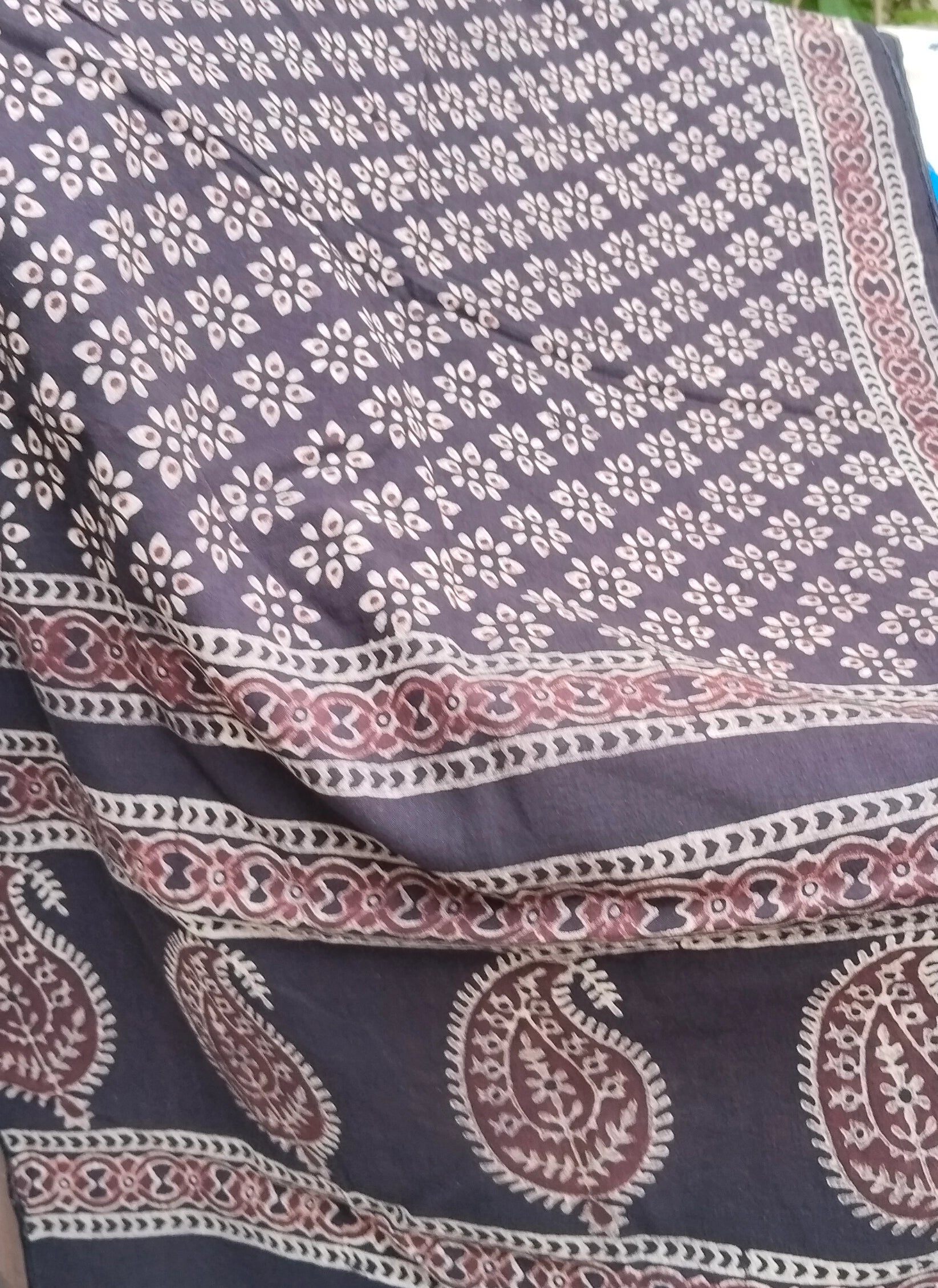 Lightweight and breathable, the Ajrak Black Floral Scarf drapes beautifully, offering versatility, wear it as a neck wrap, shoulder stole, or even a headscarf. Its heritage design pairs effortlessly with Ajrak Design Dress outfits, modest fashion looks, or contemporary ensembles.