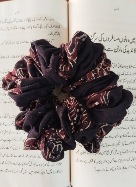 Ajrak Black Scrunchie – Dancing Girl Print Handcrafted Hair Accessory