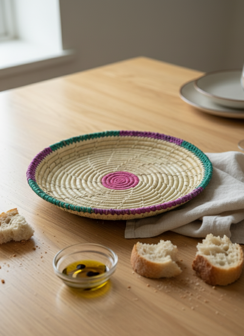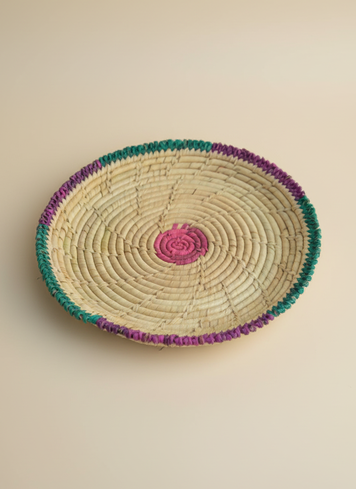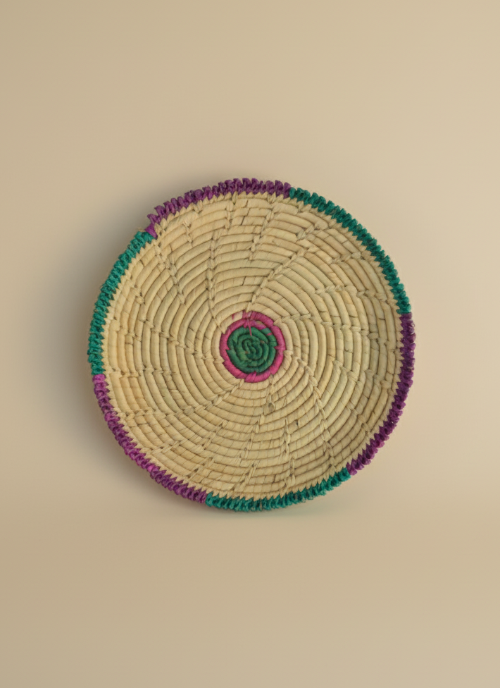 Bring natural elegance to your dining table with this Hand Woven Palm Leaf Bread Plate, beautifully crafted by skilled women artisans from Sindh. Measuring 10x10 inches, this simple yet stylish plate (changair) is made from 100% natural palm leaves, a perfect blend of sustainability and tradition. Ideal for serving roti, naan, paratha, fruits, or snacks, it adds an earthy touch to your kitchen and dining setup. Each changair is handwoven using age-old techniques, ensuring durability, eco-friendliness, and authentic craftsmanship. With its minimalist design, this palm leaf plate complements both rustic and modern table decor — making it an everyday essential and a thoughtful, sustainable gift.