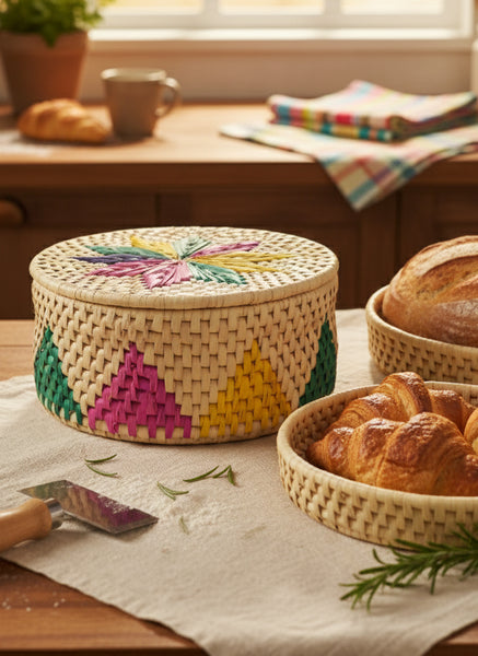 Ideal for serving bread, roti, or fruits, its sturdy and breathable structure keeps food fresh while adding a rustic charm to your table. Every piece is handwoven using sustainable materials, supporting ethical fashion and preserving indigenous craft techniques. A perfect pick for eco-conscious homes and cultural gifting.