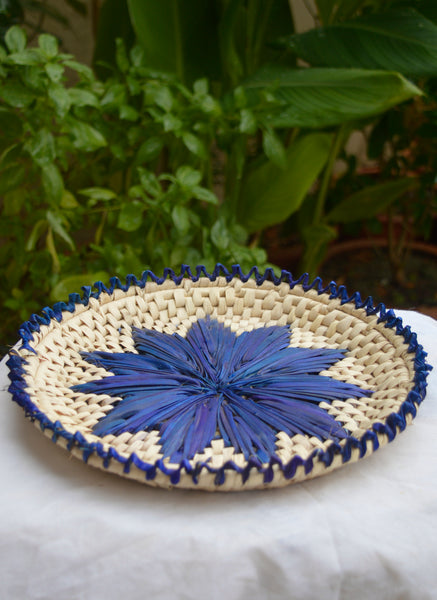 Hand Woven Palm Leaf Bread Plate (Changair) – Purplish Blue Color, 10x10 Inches