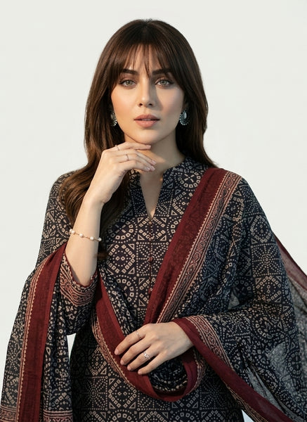 Ajrak Black Chunri Two-Piece – Organic Dye Hand Block Printed (Lawn Shirt & Dupatta)