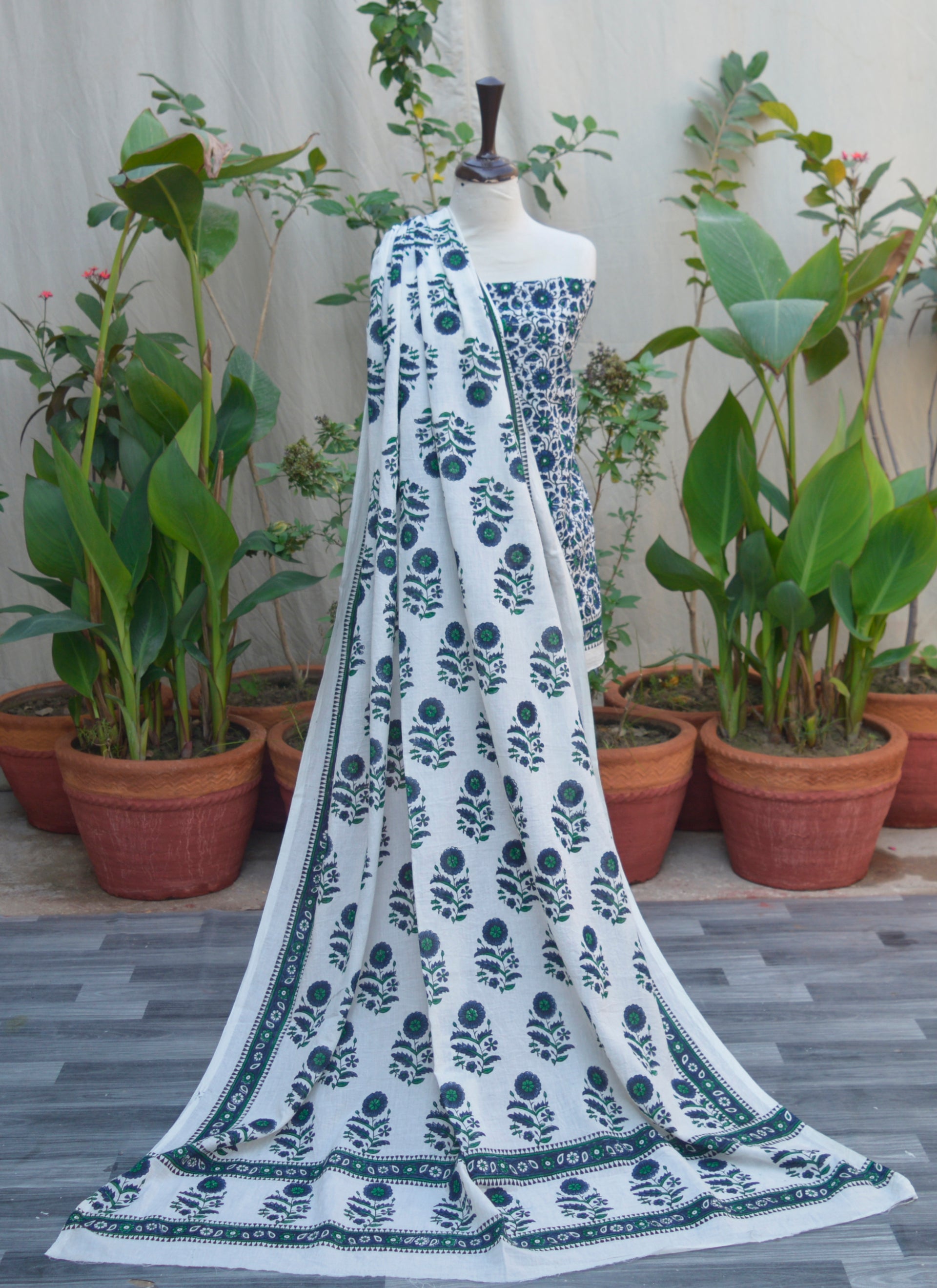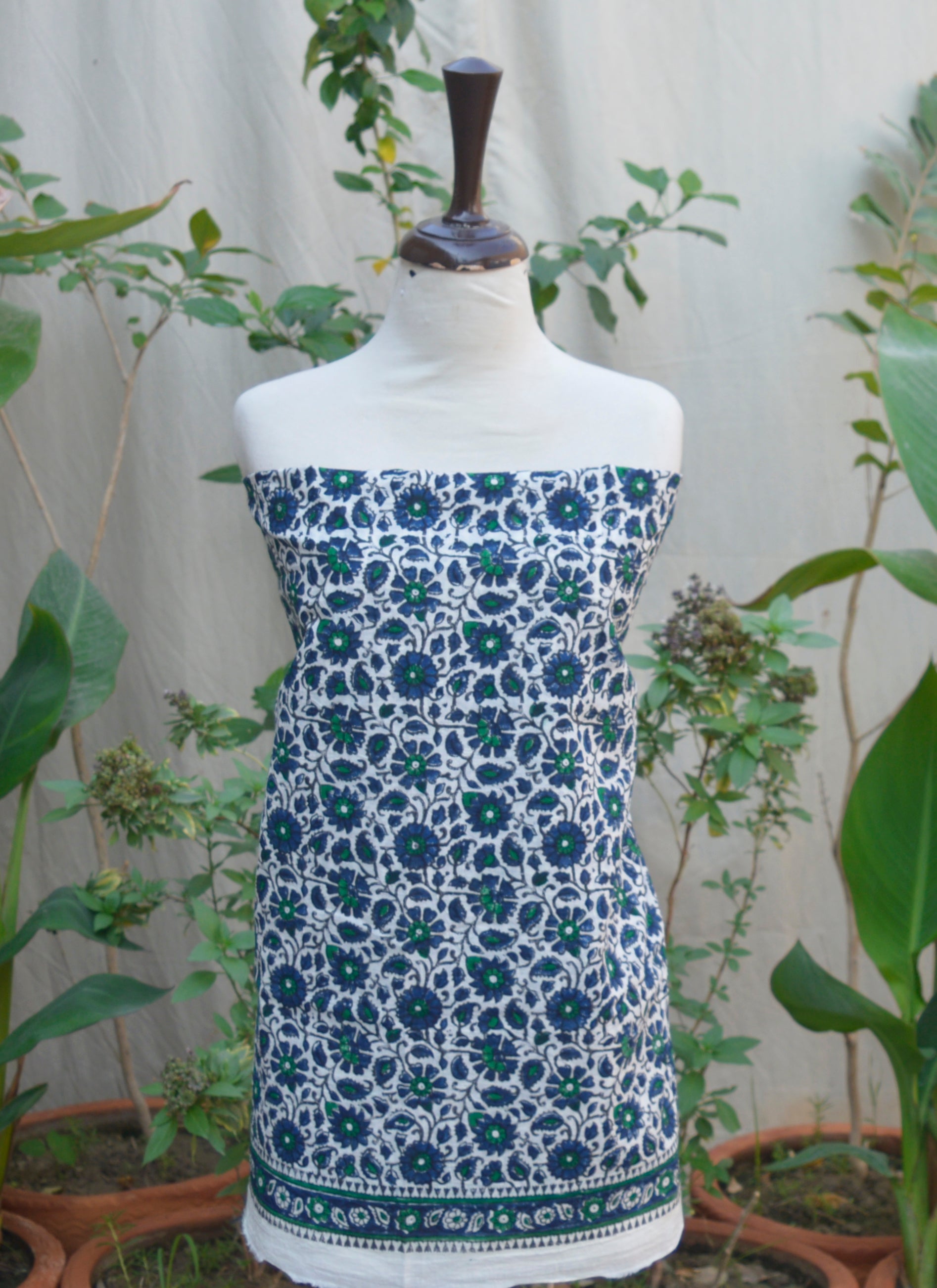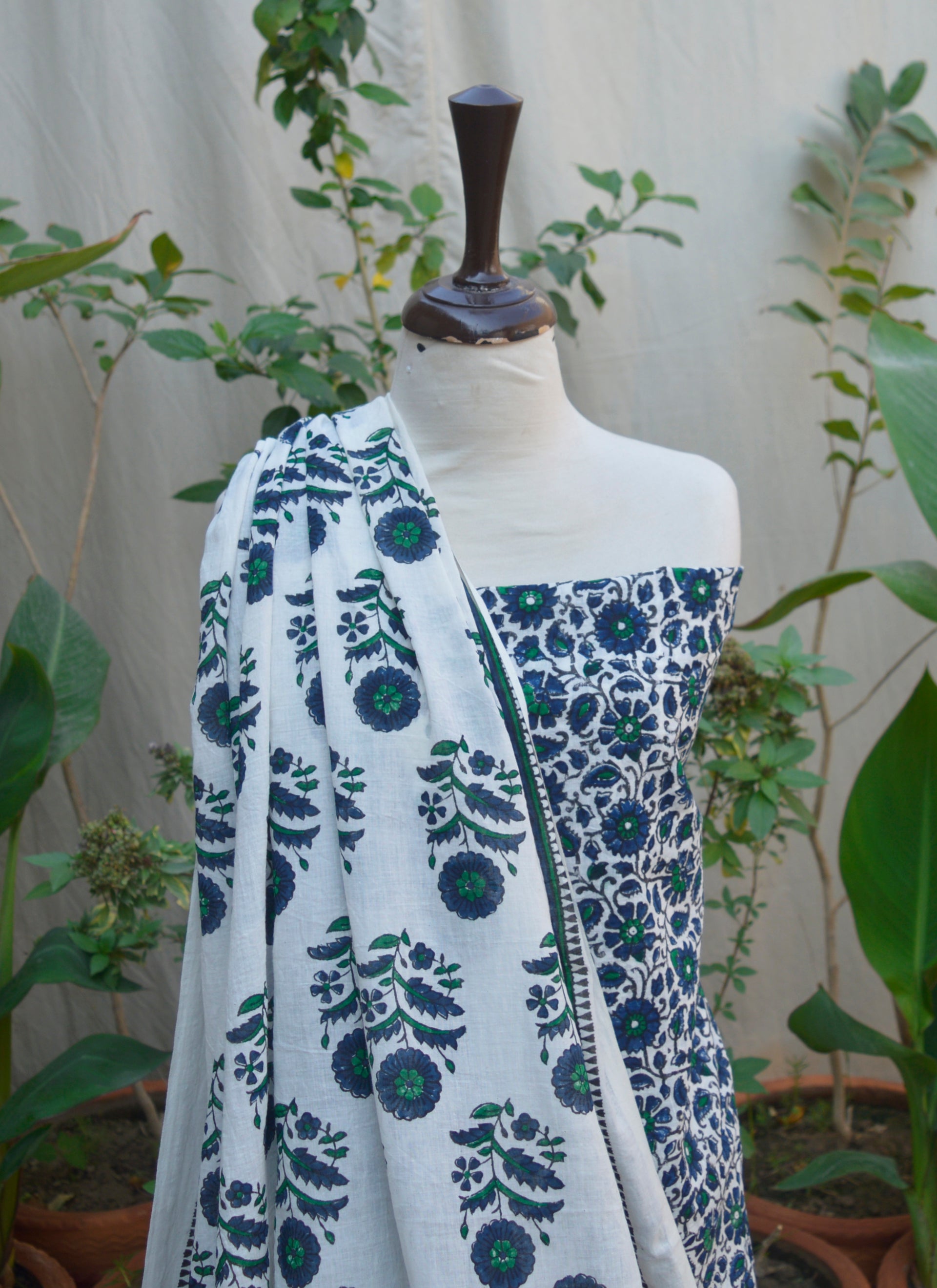 The refreshing white base is adorned with delicate blue daisy flower motifs, creating a lively and graceful look. The authentic hand block print adds charm and uniqueness, making each piece a one-of-a-kind masterpiece. Designed for both comfort and sophistication, the soft lawn fabric feels smooth against the skin, ensuring effortless style throughout the day.