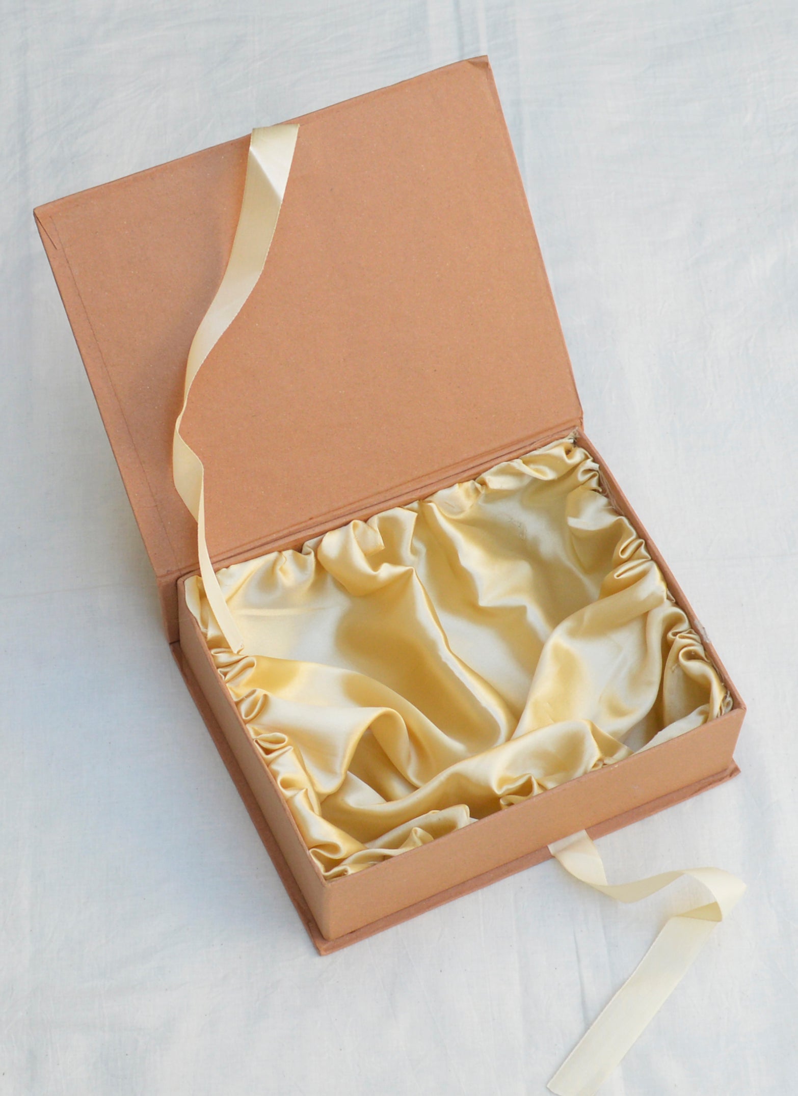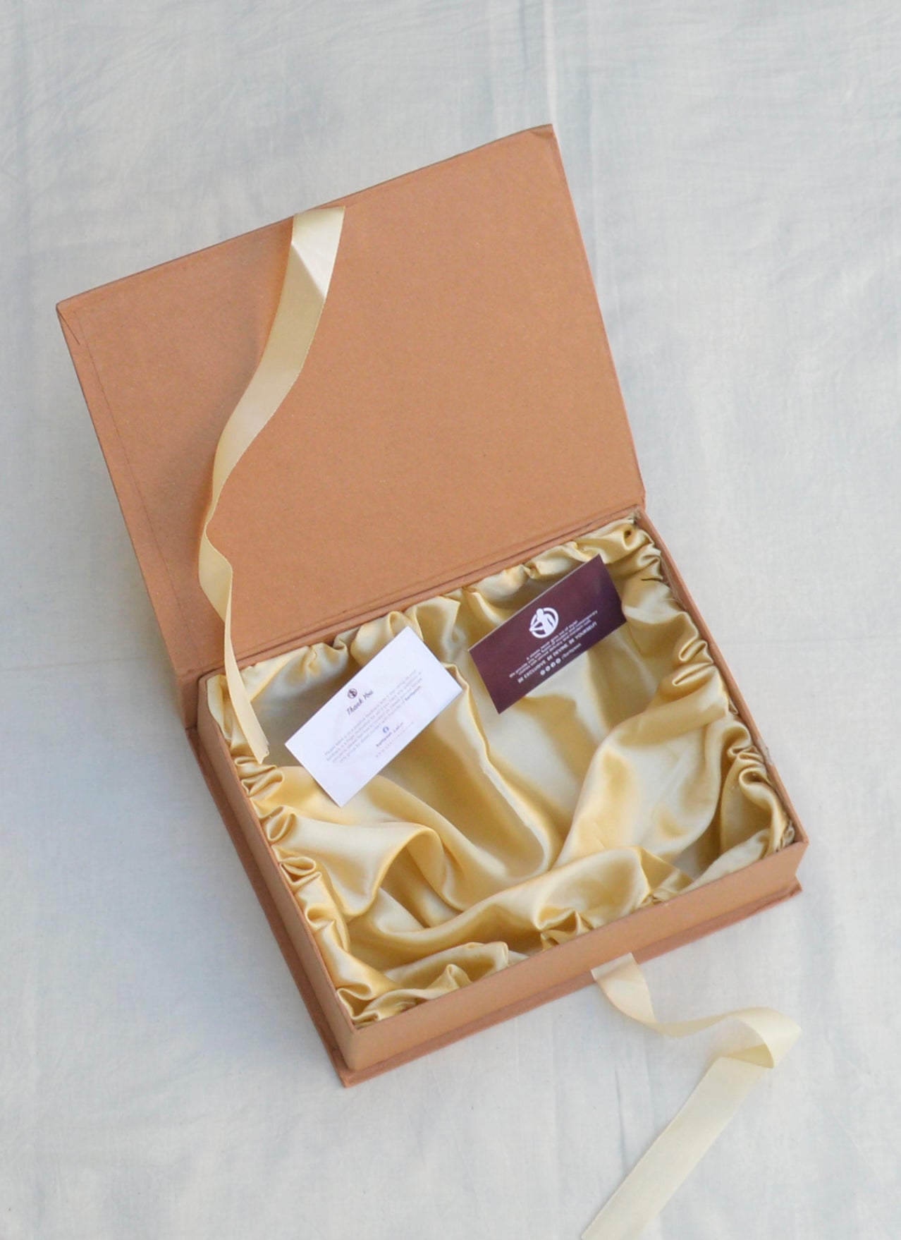 Upgrade your Sartiyoon purchase with this exquisite golden satin gift box and make your gifts truly special!