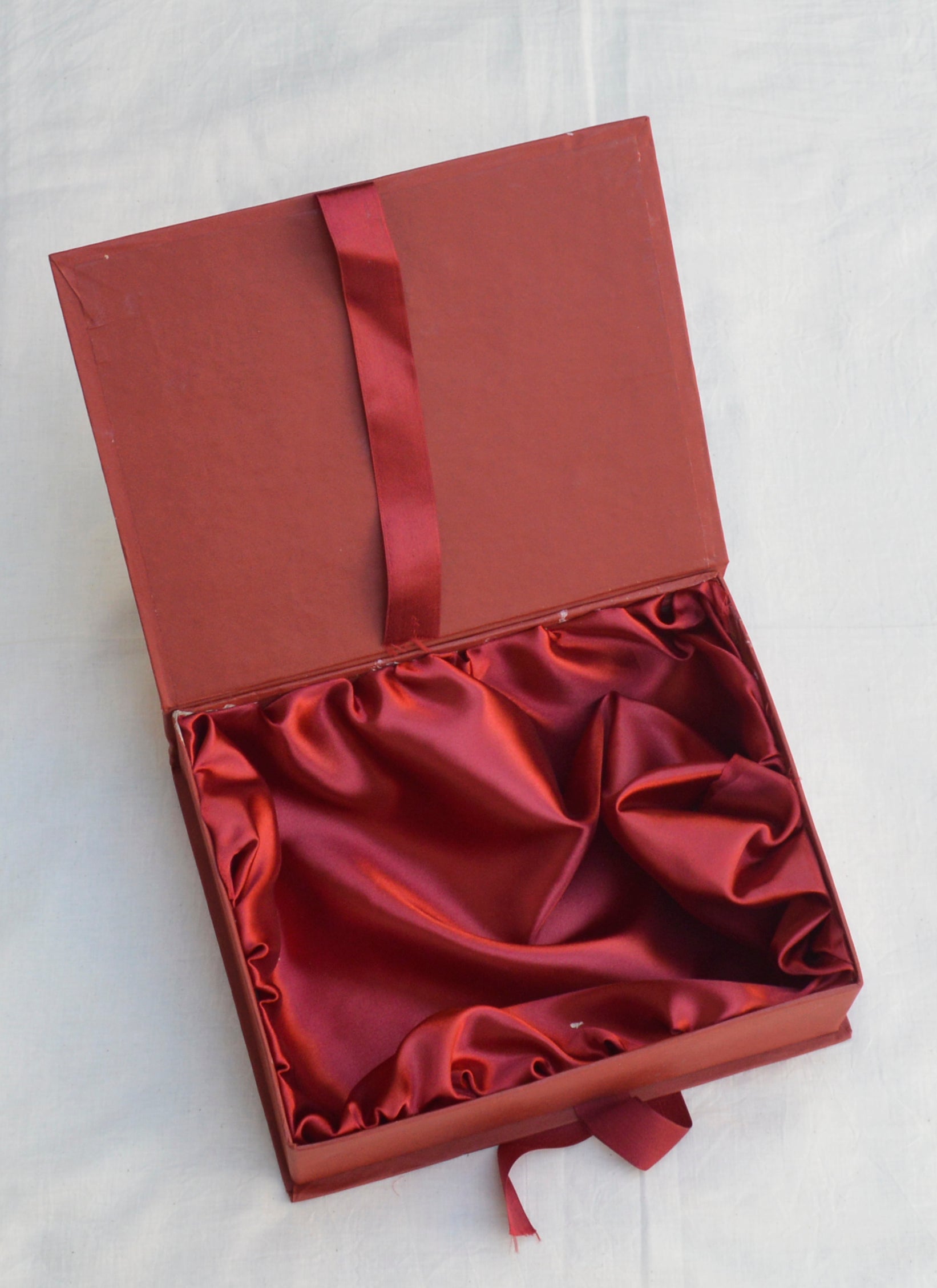 Luxury Maroon Satin Gift Box – Premium Packaging for Sartiyoon Ajrak & Clothing Gifts