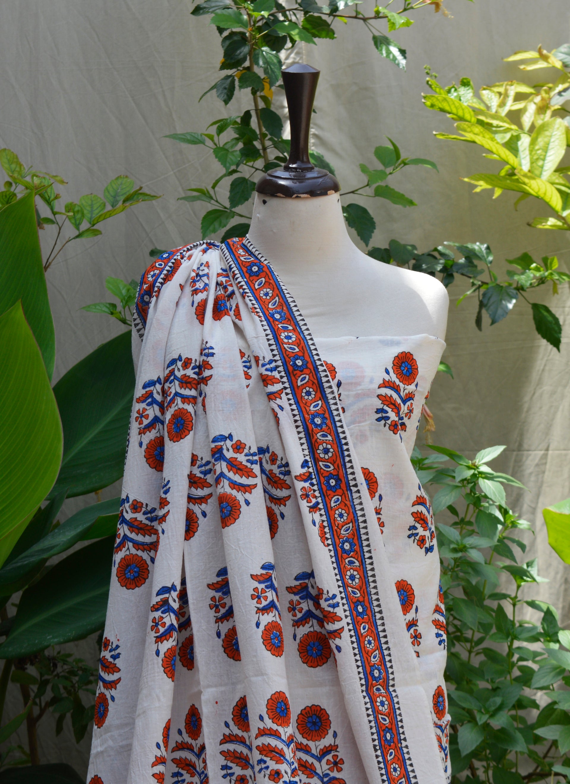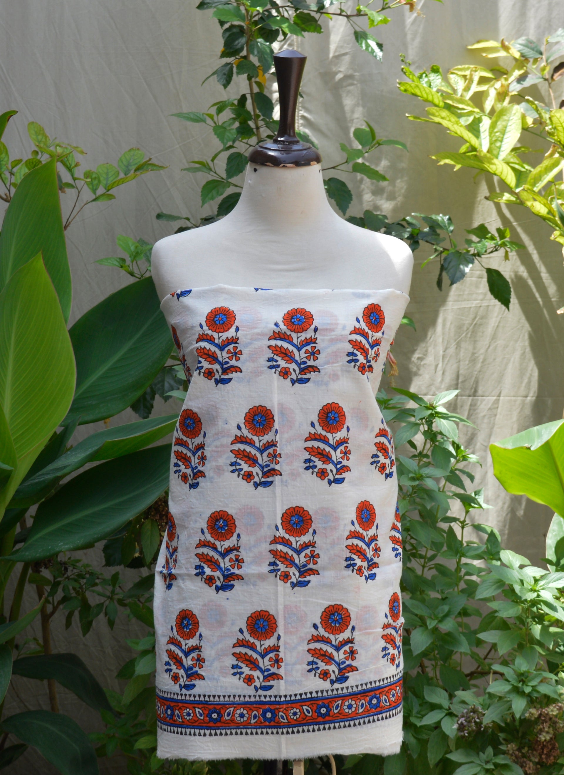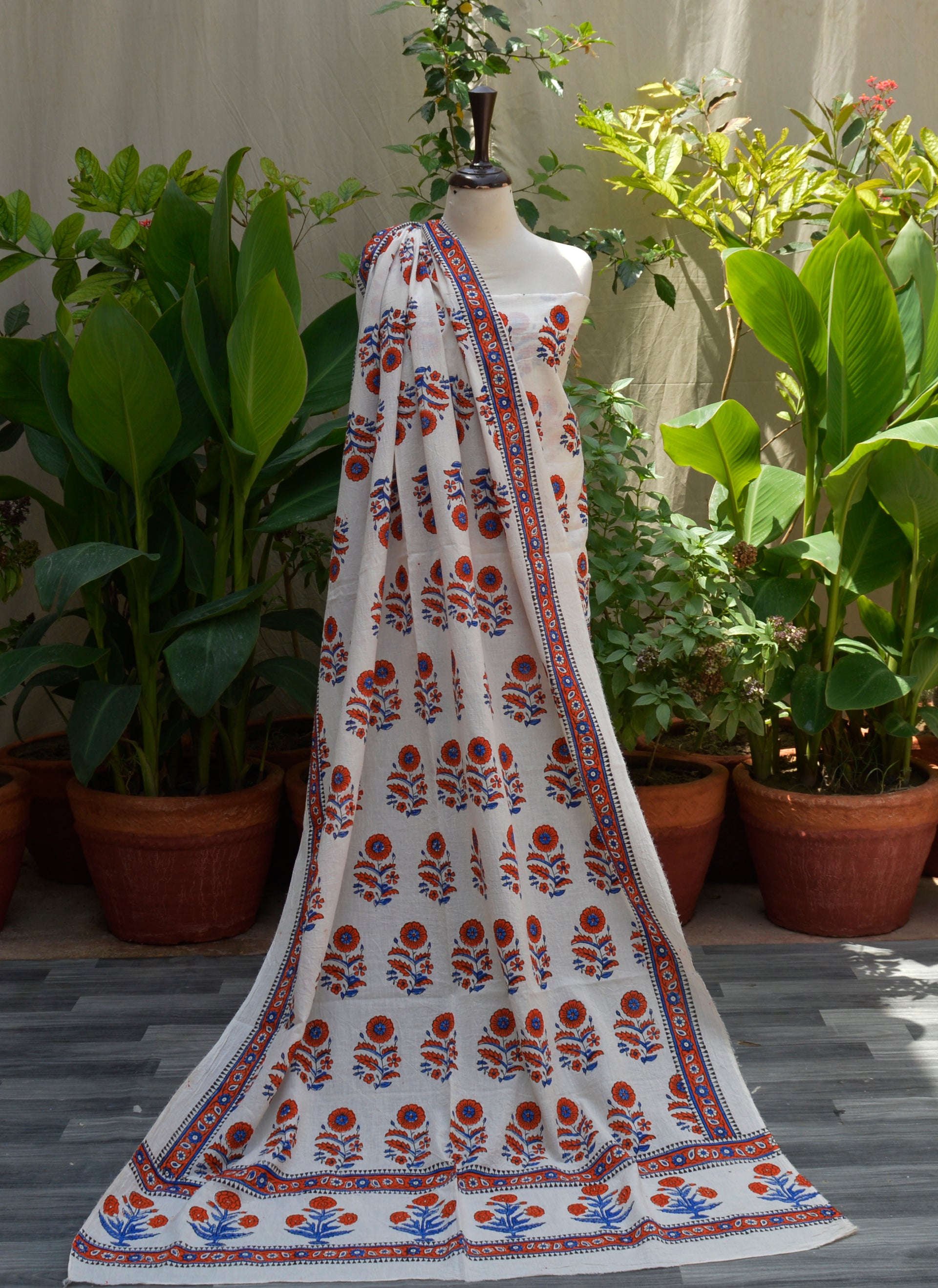 Margarita Flower Orange Hand Block Print Two-Piece (Shirt & Dupatta) – Premium Lawn Fabric