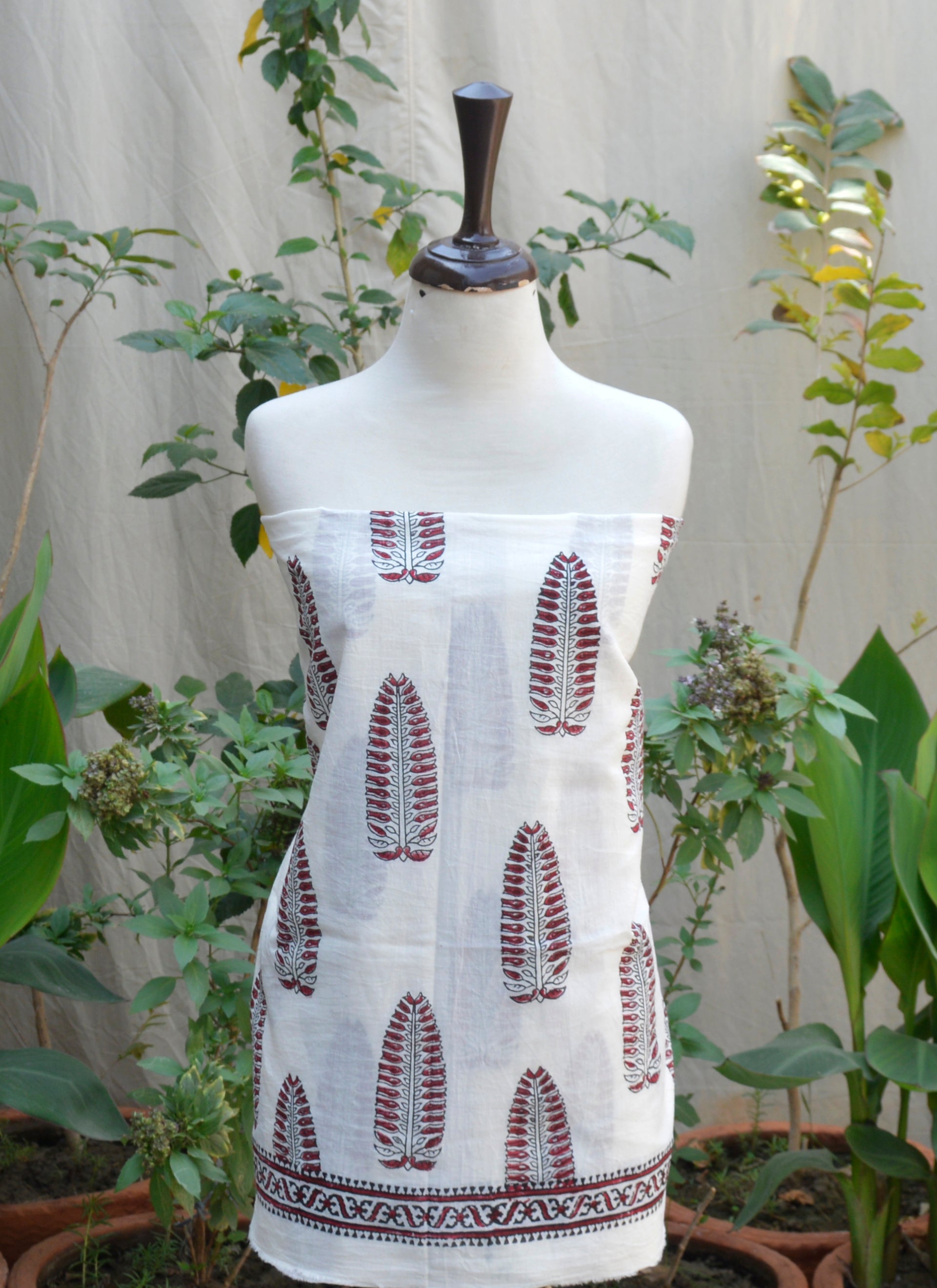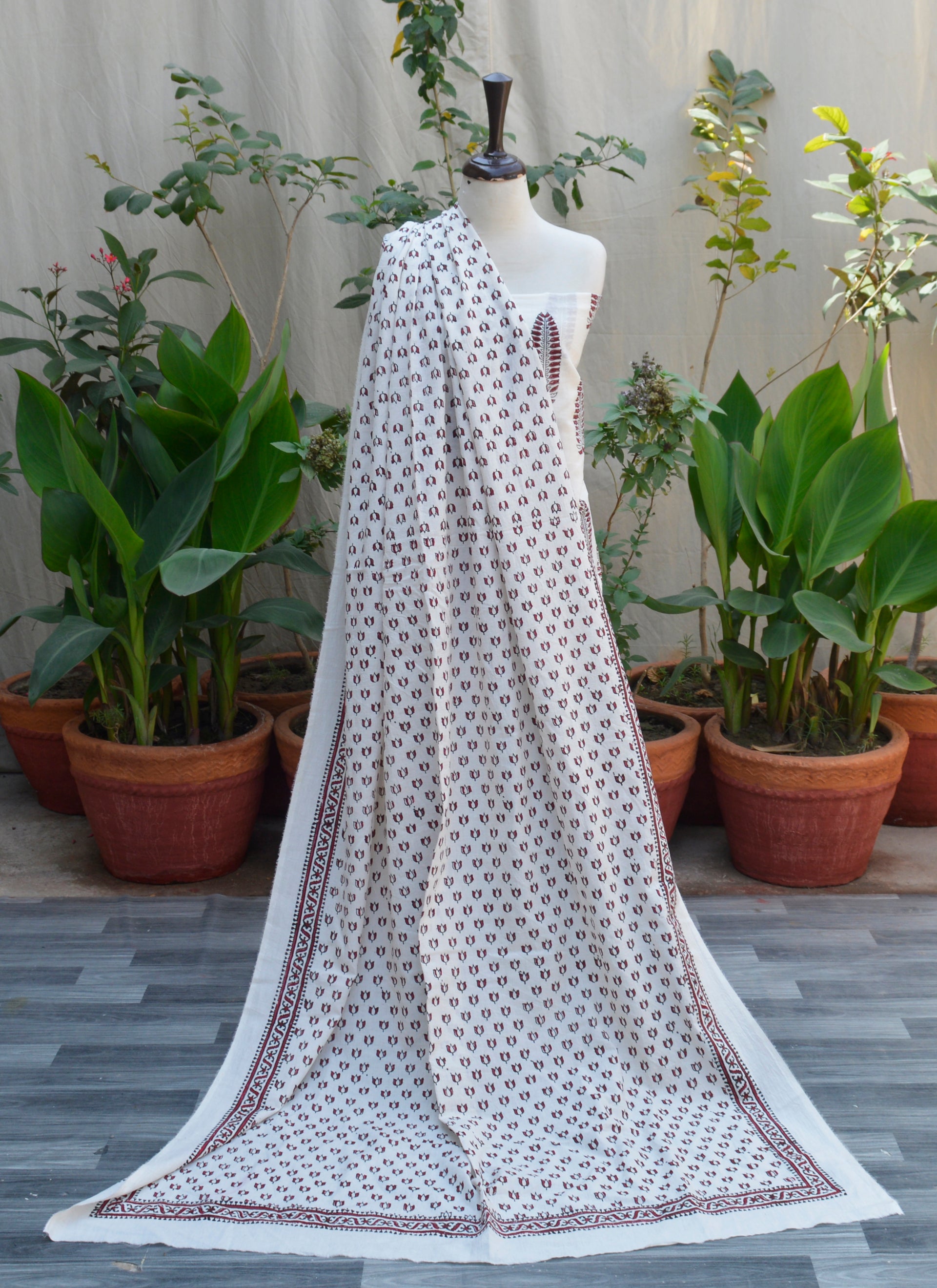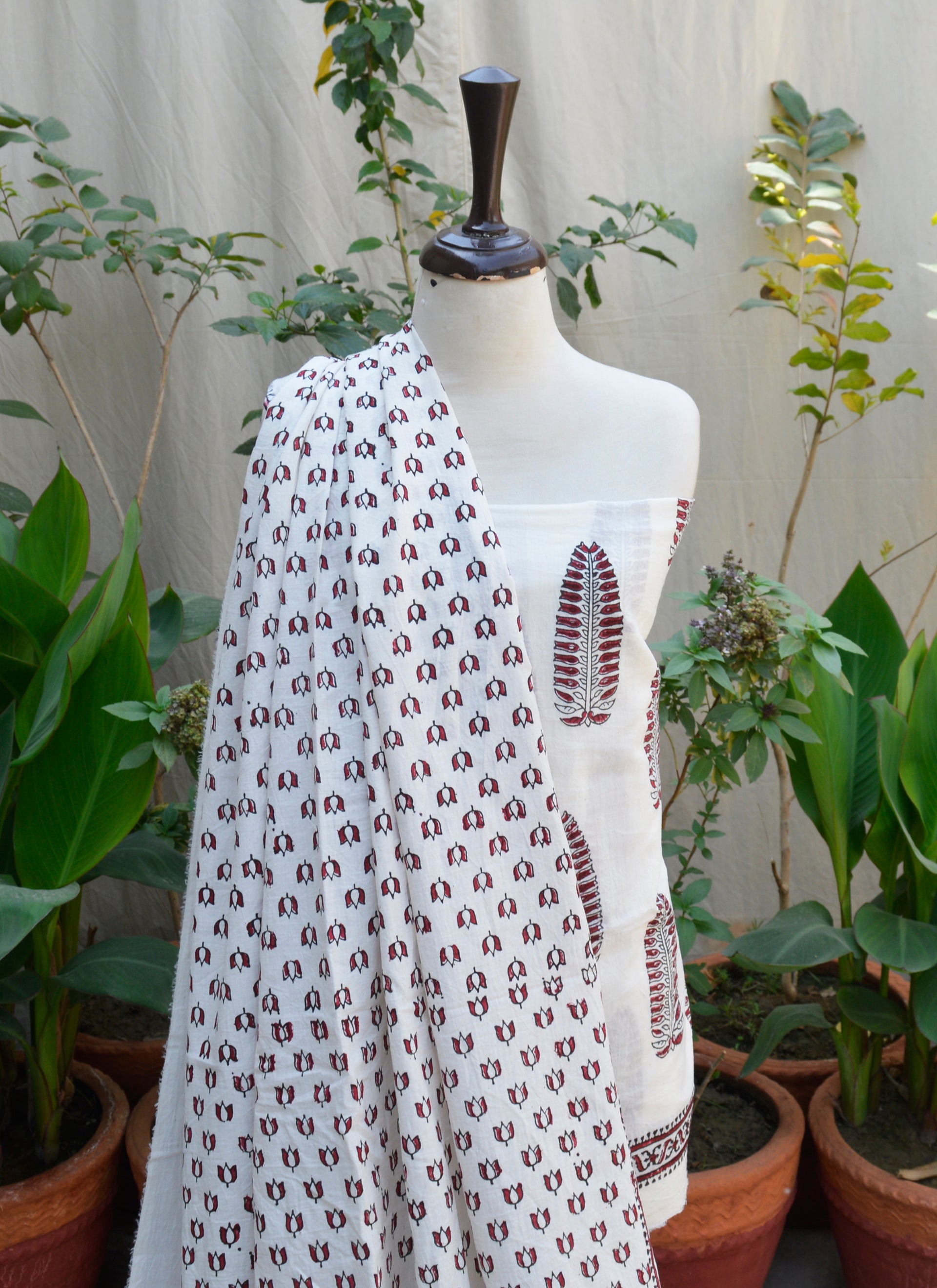 Maroon & White Hand Block Printed Lawn Two-Piece – Unstitched Shirt & Dupatta