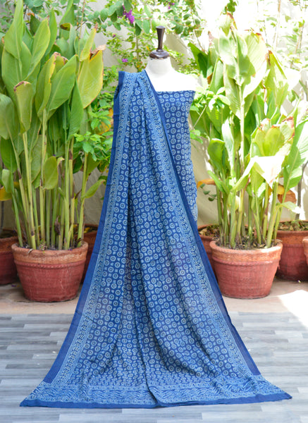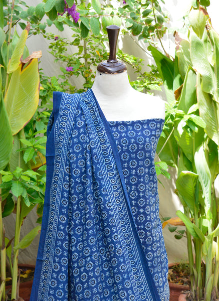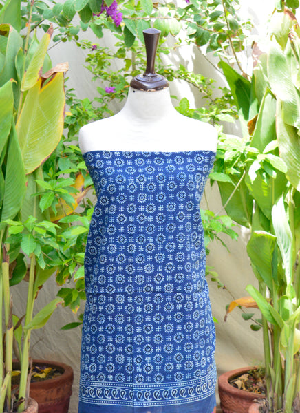 Ajrak Floral Indigo – Organic Dye Hand Block Printed Lawn Fabric