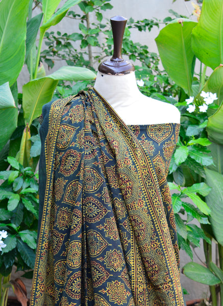 Celebrate timeless tradition with this Organic Dye Hand Block Print Green Badam Ajrak Design Dress, an unstitched two-piece set featuring a shirt and dupatta (each 2.5 meters in length and 44 inches wide). Crafted with organic dyes on premium cotton, this set showcases the classic Badam motif in rich green hues, reflecting the cultural elegance of Sindhi hand block printing.