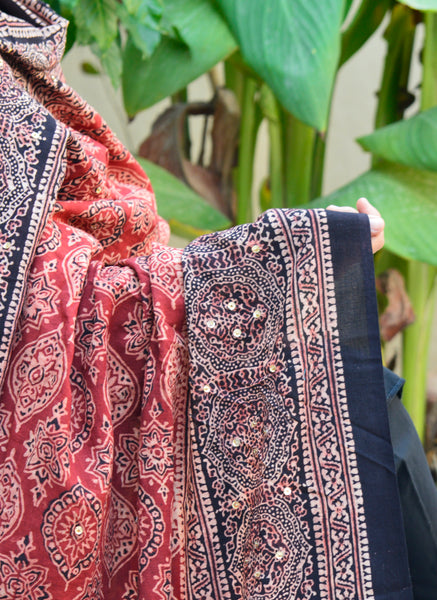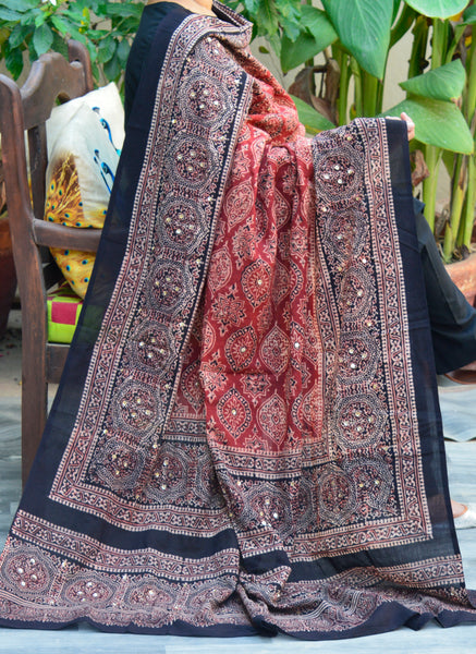 | Scarf/Shawl style | With Sitara Sequence Work, Without Sitara (Classic Plain Ajrak) |