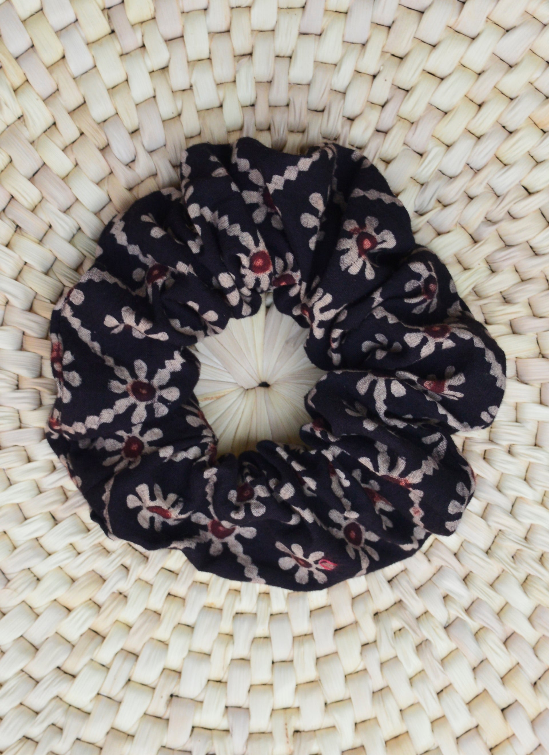 Please note: The pattern, colour, and design of the scrunchie may differ from the photos, however all will feature traditional Ajrak blockprints in natural dyes.
