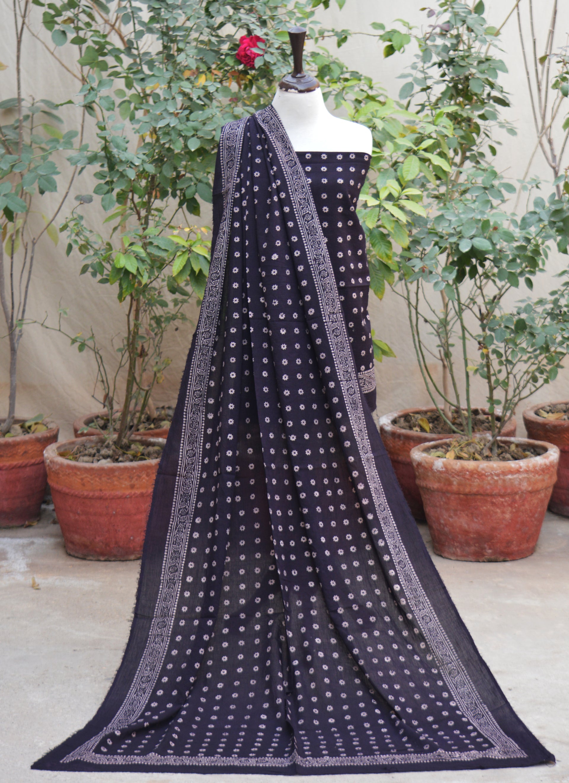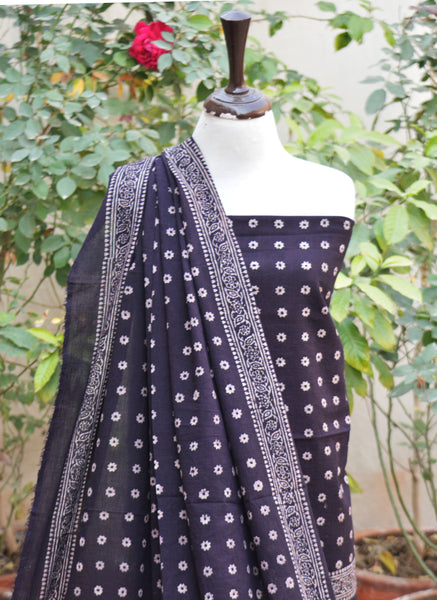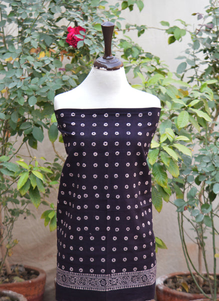 A refined Ajrak Design Dress set featuring Cosmic Diamonds black hand block printing with organic dyes, crafted for timeless cultural elegance.