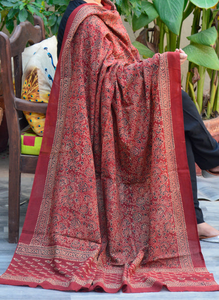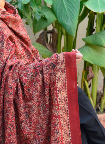 Crafted by skilled Sindhi artisans, every detail reflects the centuries-old Ajrak tradition — from its earthy red tones to its intricate handwork. Perfect as a dupatta, shawl, or shoulder wrap, it adds a touch of cultural sophistication to both casual and festive outfits.