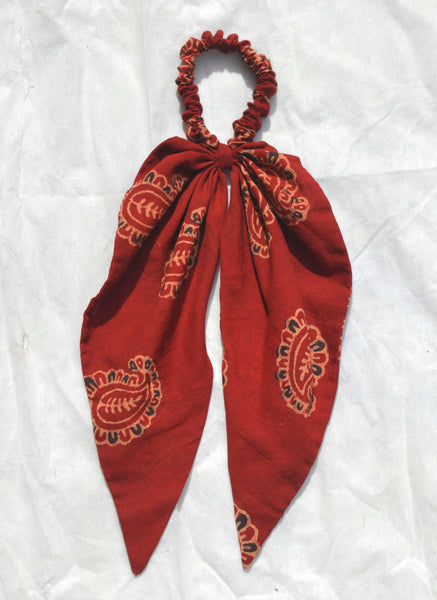 Ajrak Scarf Scrunchie – Anbi Red Handmade Cotton Hair Accessory