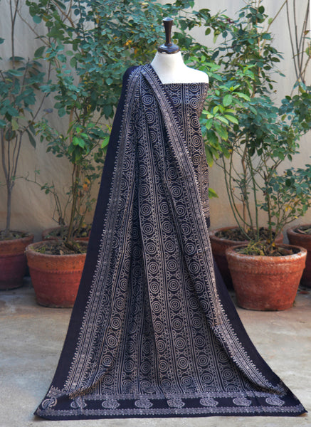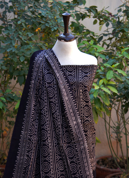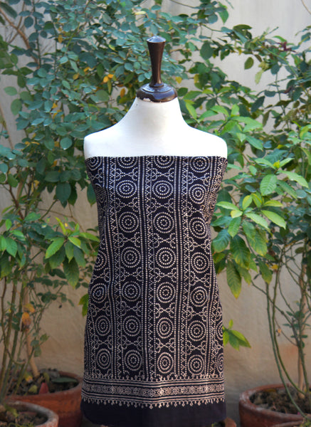 A refined Ajrak Design Dress two-piece set featuring Chunri black hand block printing with organic dyes, crafted for timeless Sindhi cultural elegance.